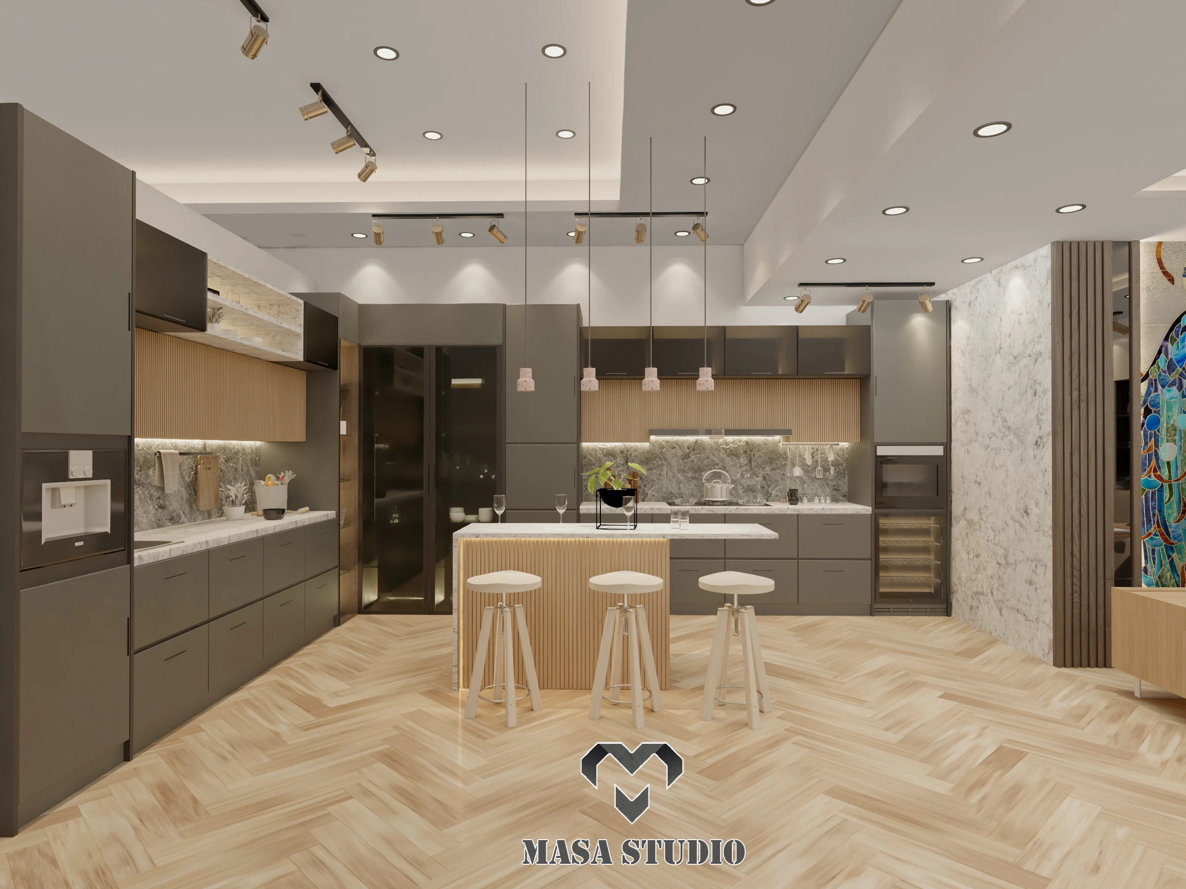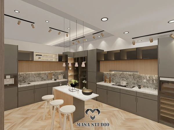 Kitchen Showroom design modern Kitchen with seeling spotlights