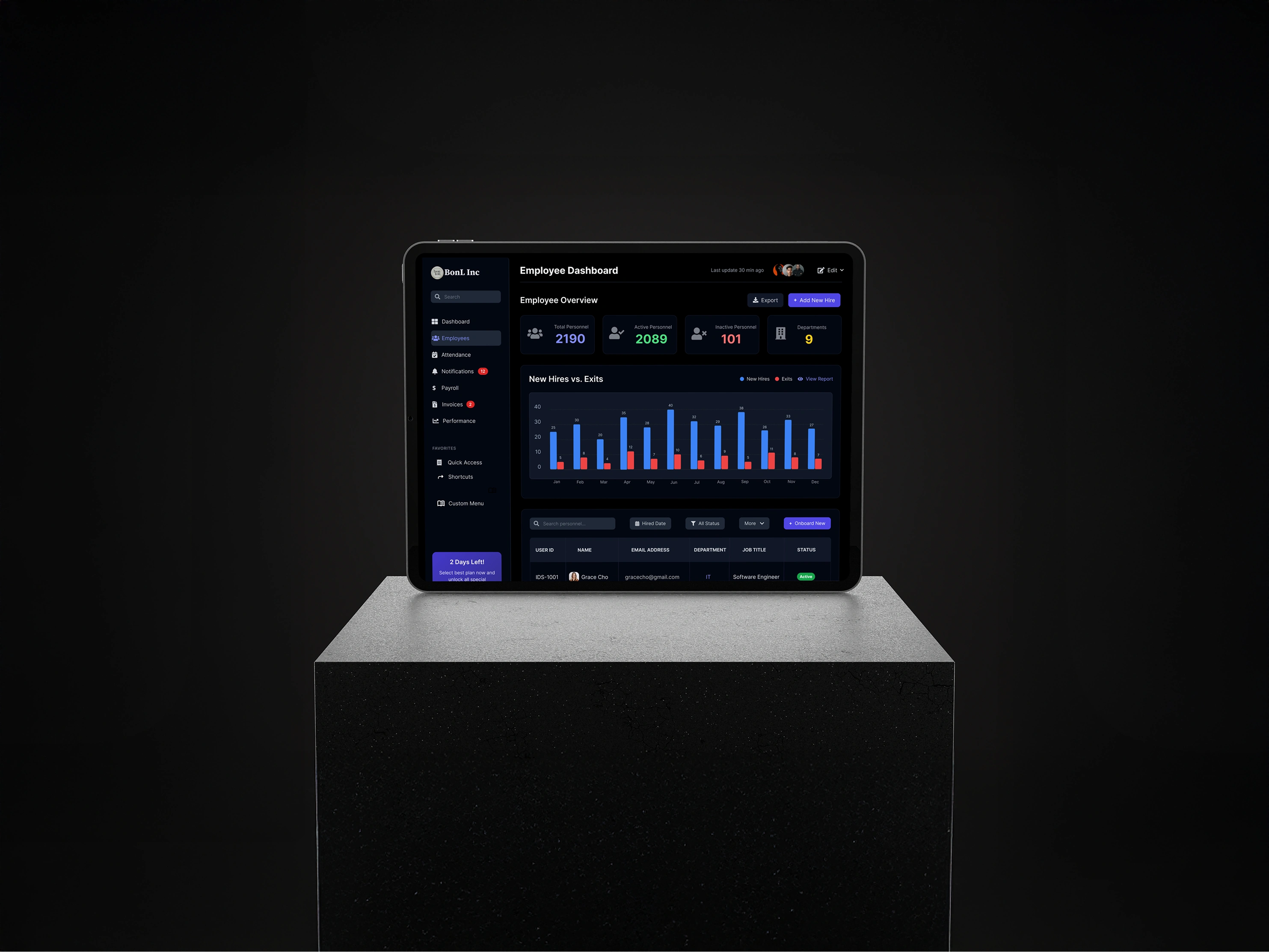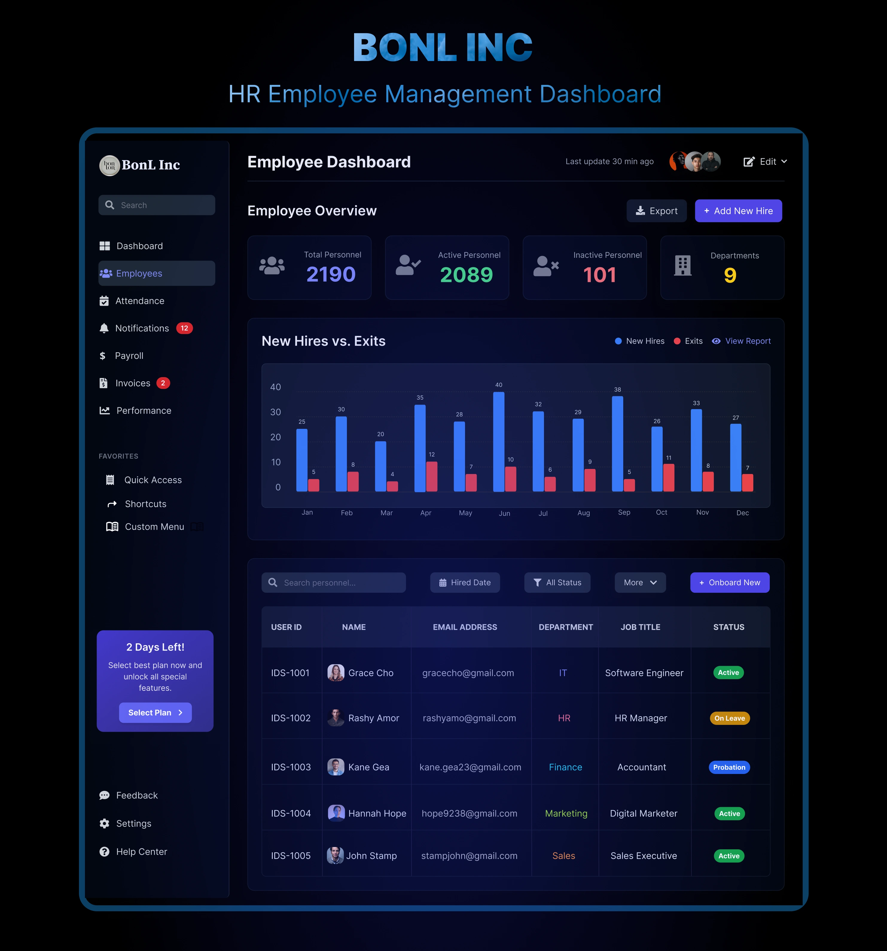BonL Inc was designed for HR and operations teams who need a clear, real-time view of their entire workforce without digging through spreadsheets or jumping between systems. Every feature on the dashboard exists to reduce the time it takes to make a confident decision.