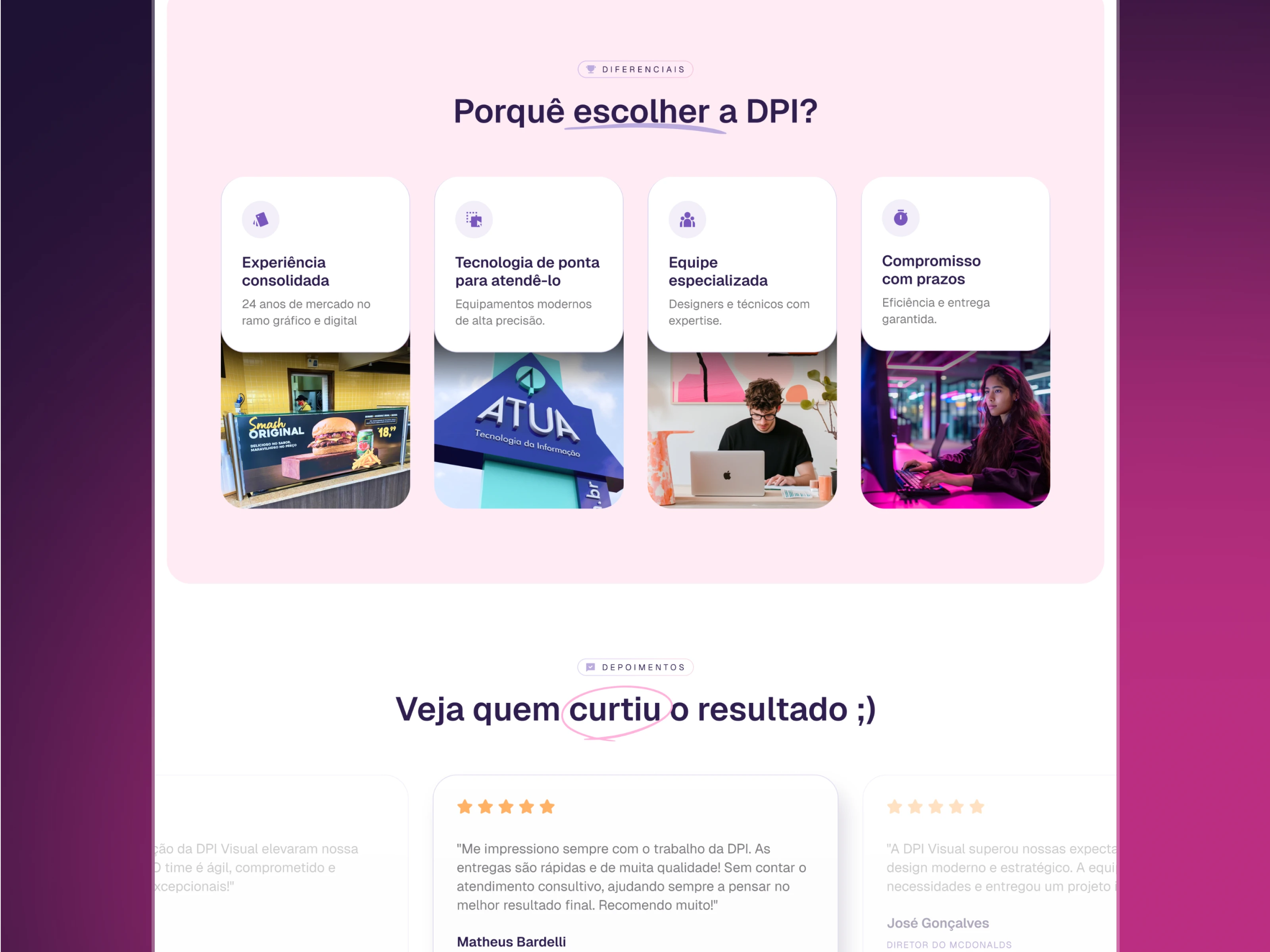 website for DPI Agency, a creative studio specialized in graphic and digital design. Focus on portfolio, services, and expertise with a modern layout.