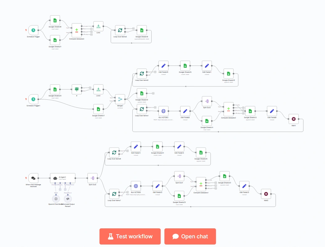 Designed a complex dual AI automation that saves countless hours of my client. This dual workflow is 100% automated. The duality allows a manual user if wished