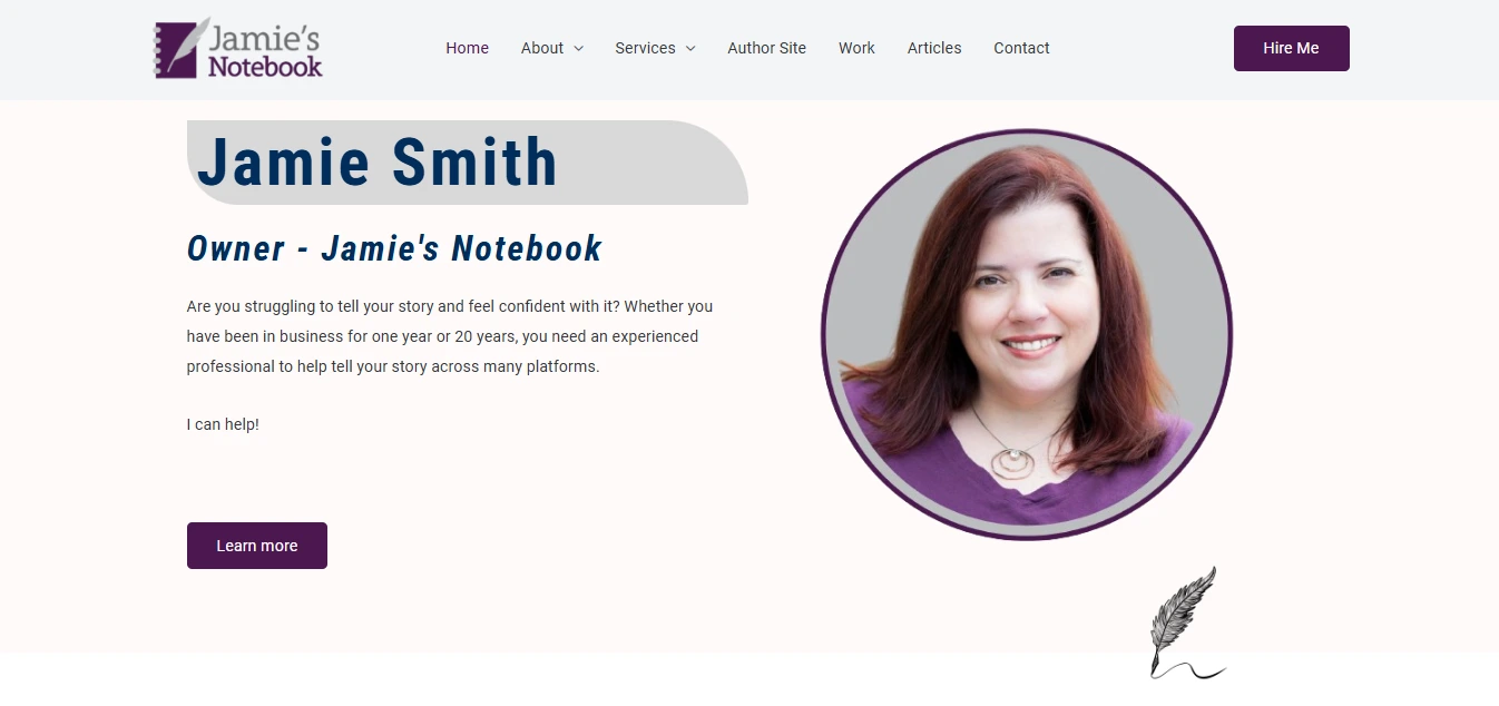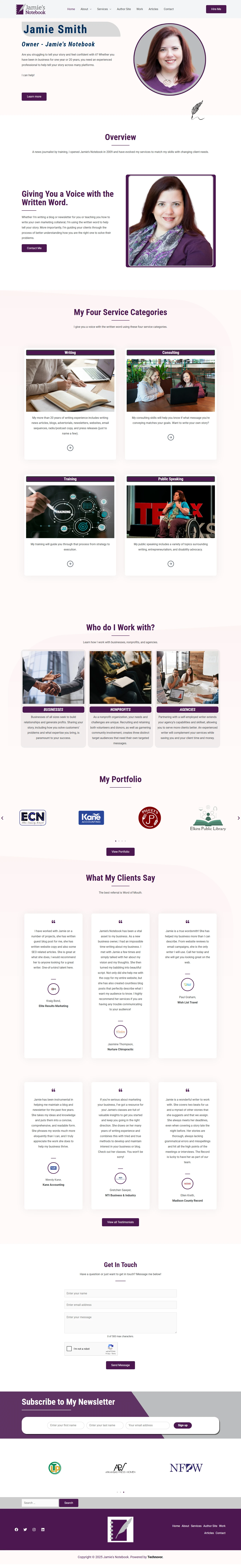 Jamie’s Notebook is the personal brand of Jamie Smith, a seasoned writer, consultant, and speaker with roots in journalism. I had the opportunity to design and develop her official website — an informative platform that presents her portfolio, outlines her services and rates, and makes it easy for potential clients to get in touch. The website serves as a digital hub to highlight her services and connect with potential clients.