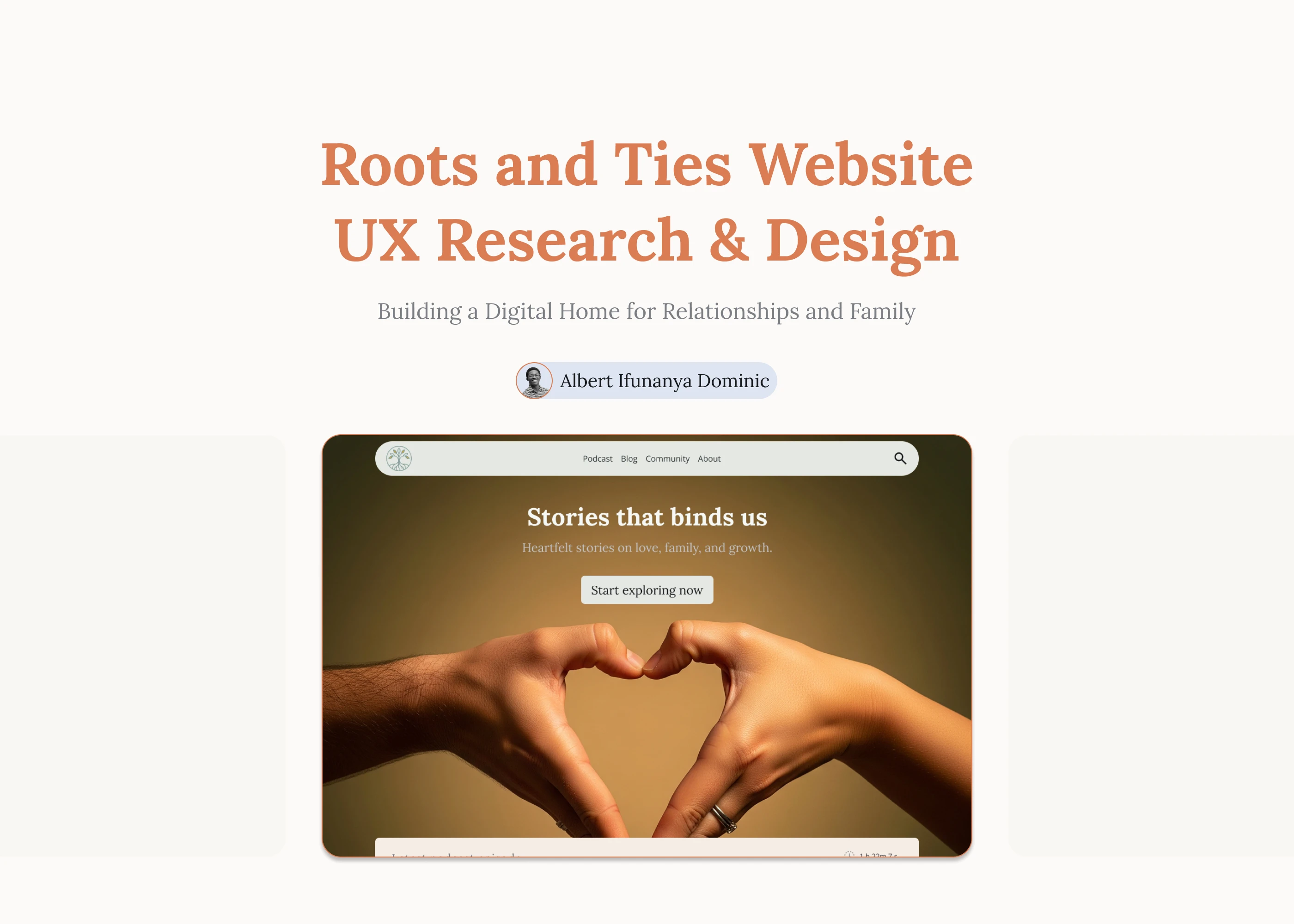 Designed an intuitive UI for "Roots & Ties,". Focused on creating an emotionally engaging experience with accessible, responsive layouts.