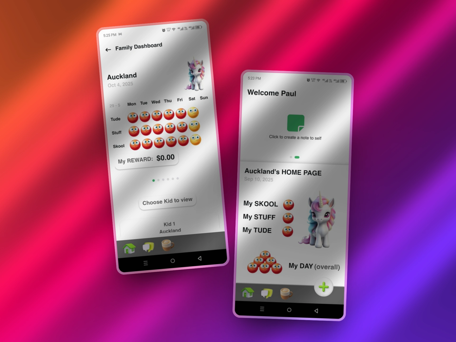 Designed and built the core chore-tracking engine: color-coded “KiDZ Light System” (Red, Yellow, Green, Blue) for tasks & behavior. Apple