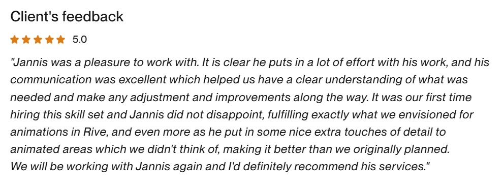 Looped duck mascot animation in Rive for iOS: head turn, blink, hair, idle breath, and tap-triggered mouth move. Light, smooth, and interactive.
