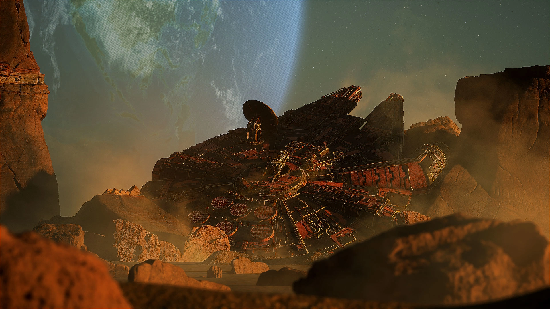 A spaceship has crashed and lost its horizon have been left behind on a planet, without anyone taking care of it.