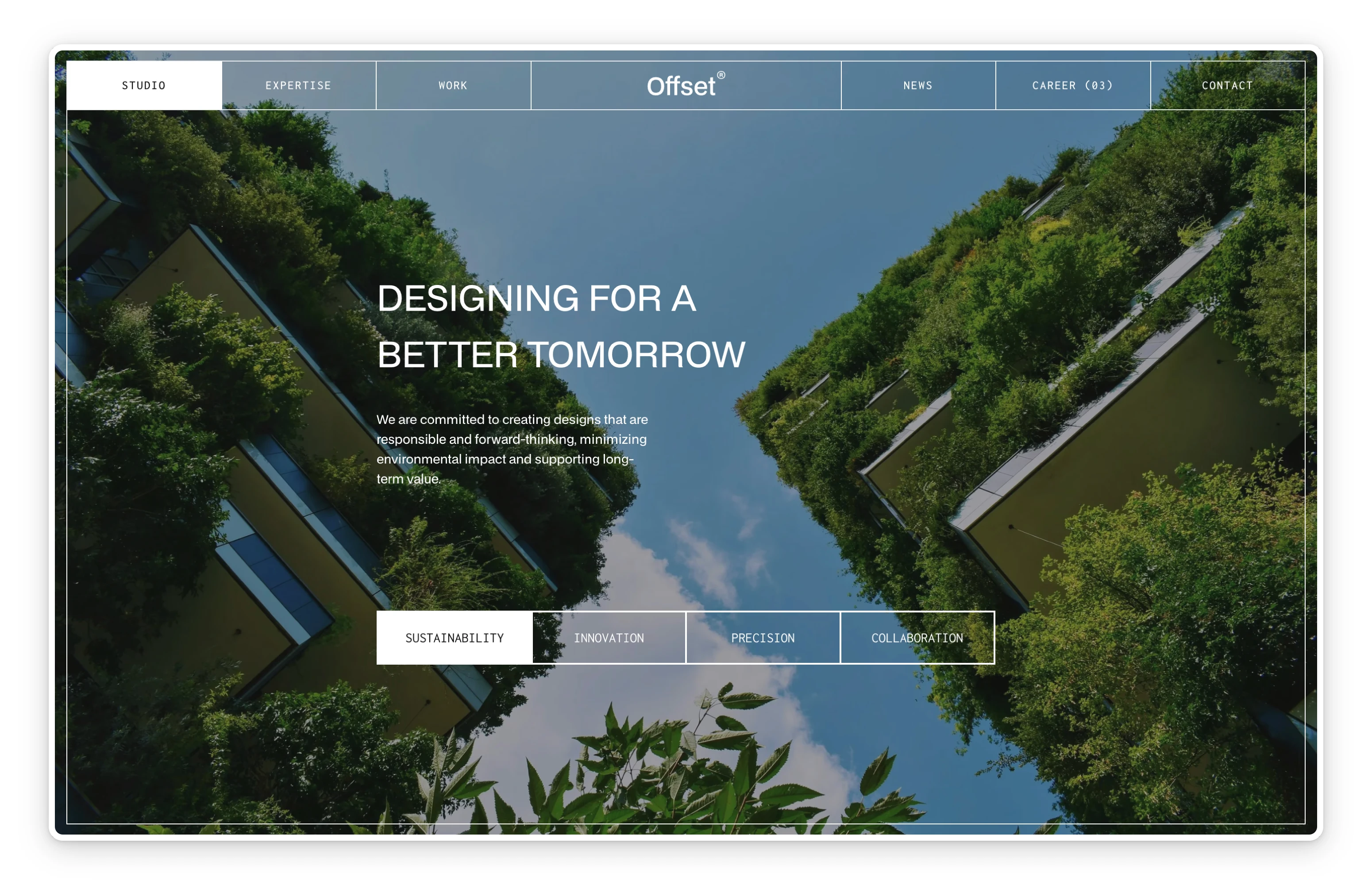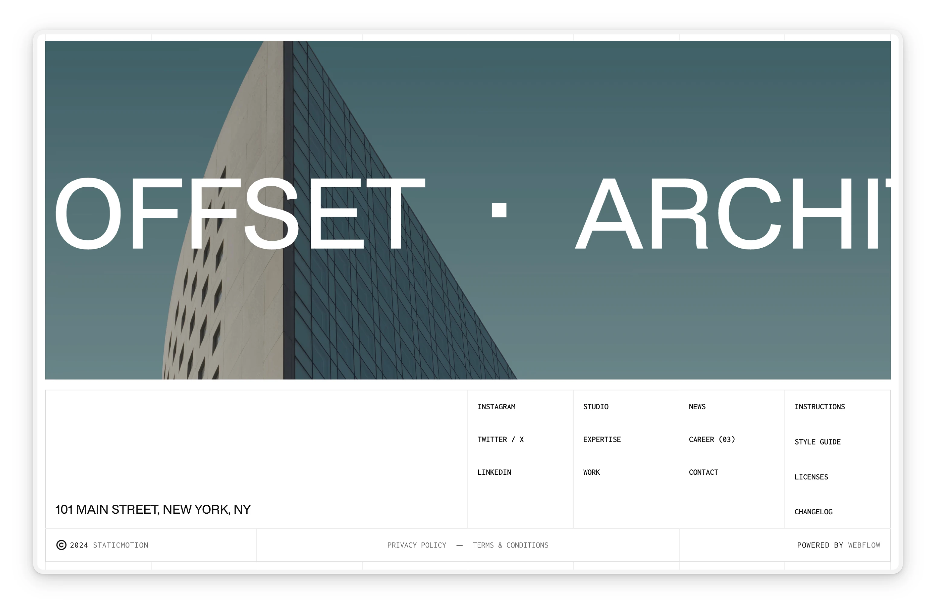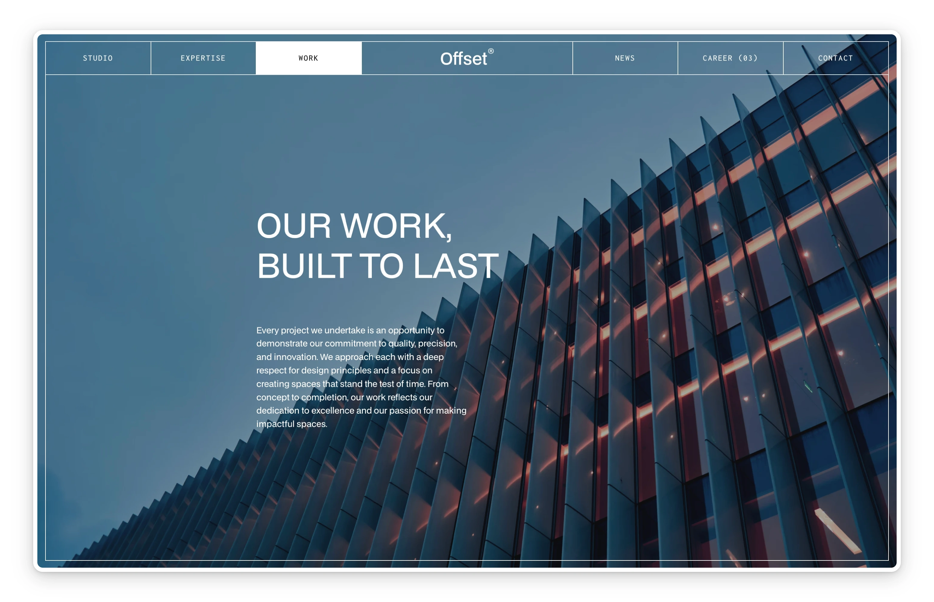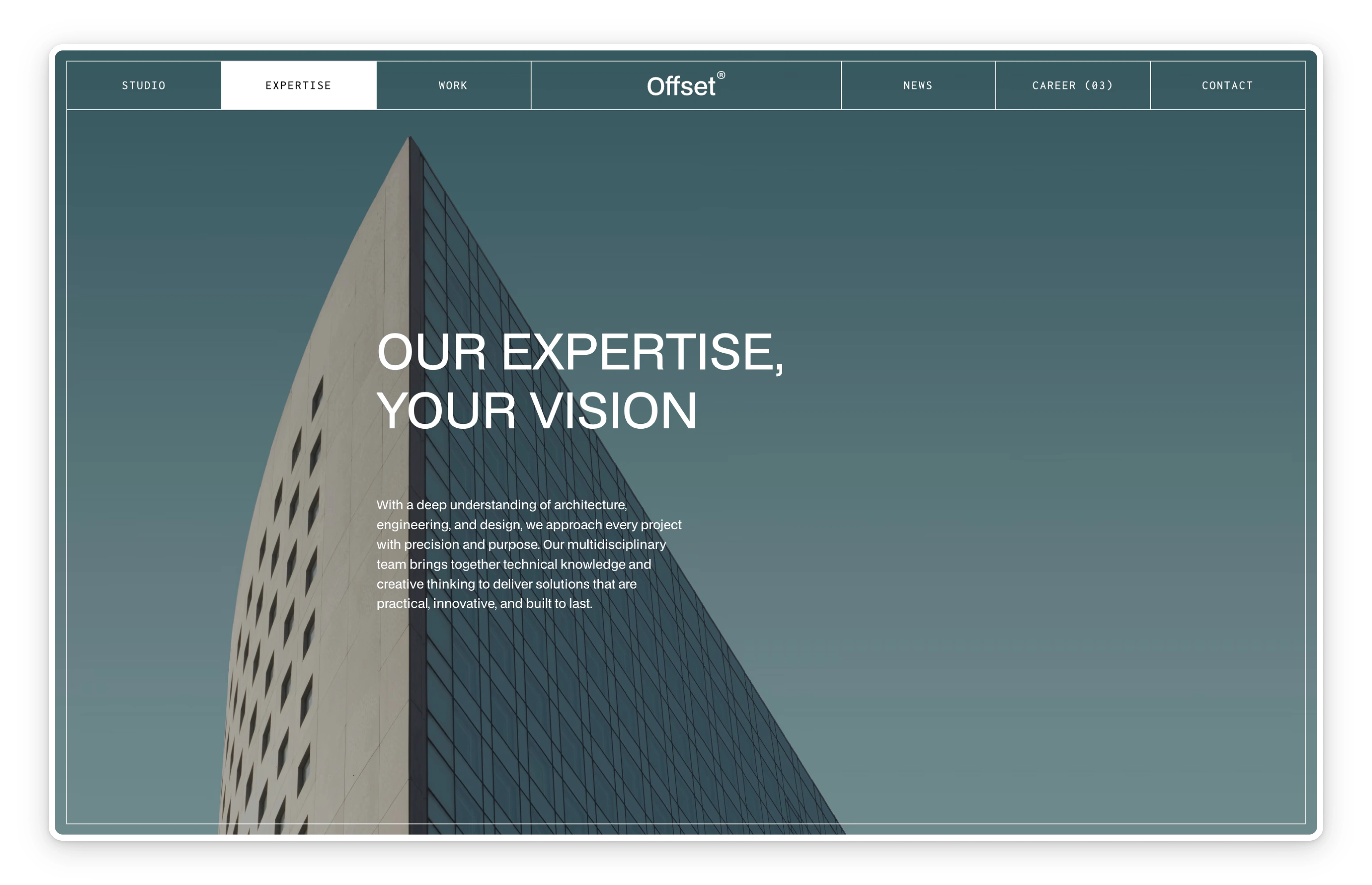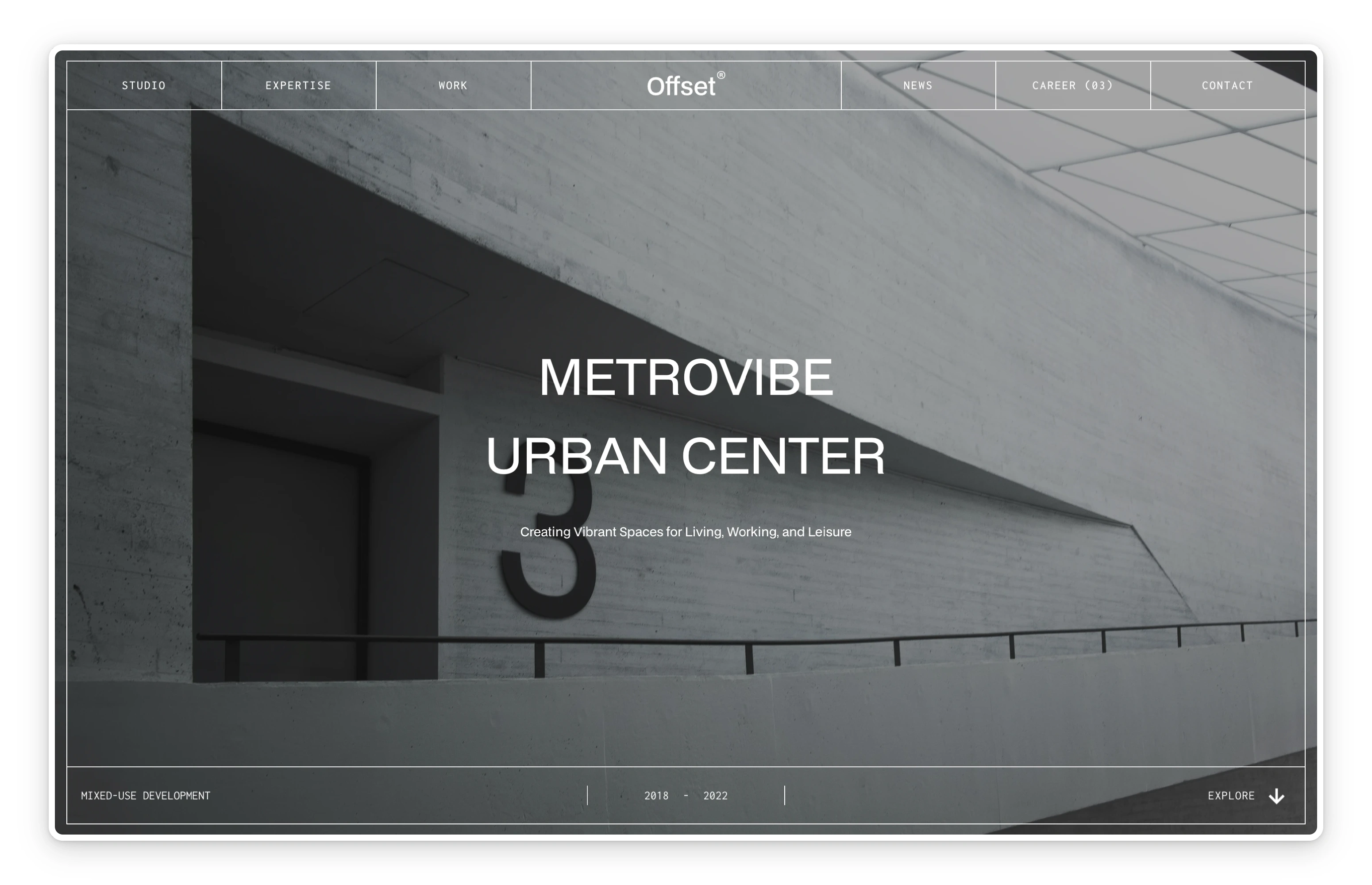Offset is a minimalist Webflow project with a light, refined design system, built to showcase architectural and creative work in a clean, professional way.