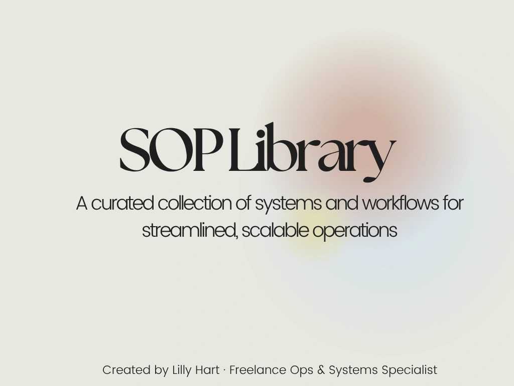 A curated library of SOPs and systems I’ve created to support operations, admin workflows, and client processes across startups, legal teams, and creative businesses. Each SOP is designed to bring clarity, consistency, and calm to fast-paced environments — with tools like Monday, Hightail, Dropbox, and more.