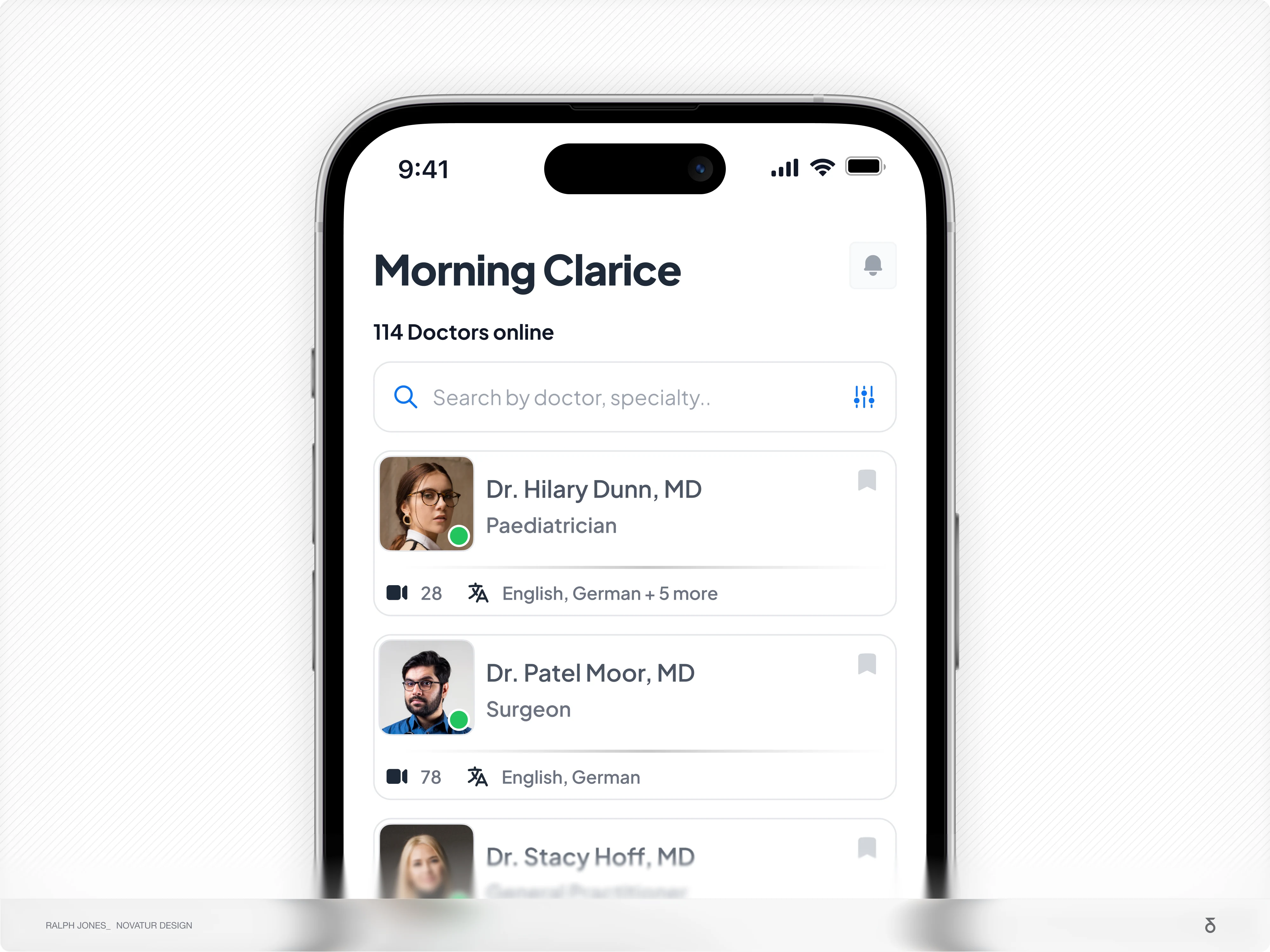 Structured doctor discovery system introduced multilingual profiles, video consultation indicators, and bookmark functionality, creating a clear path from sign-up to first appointment.