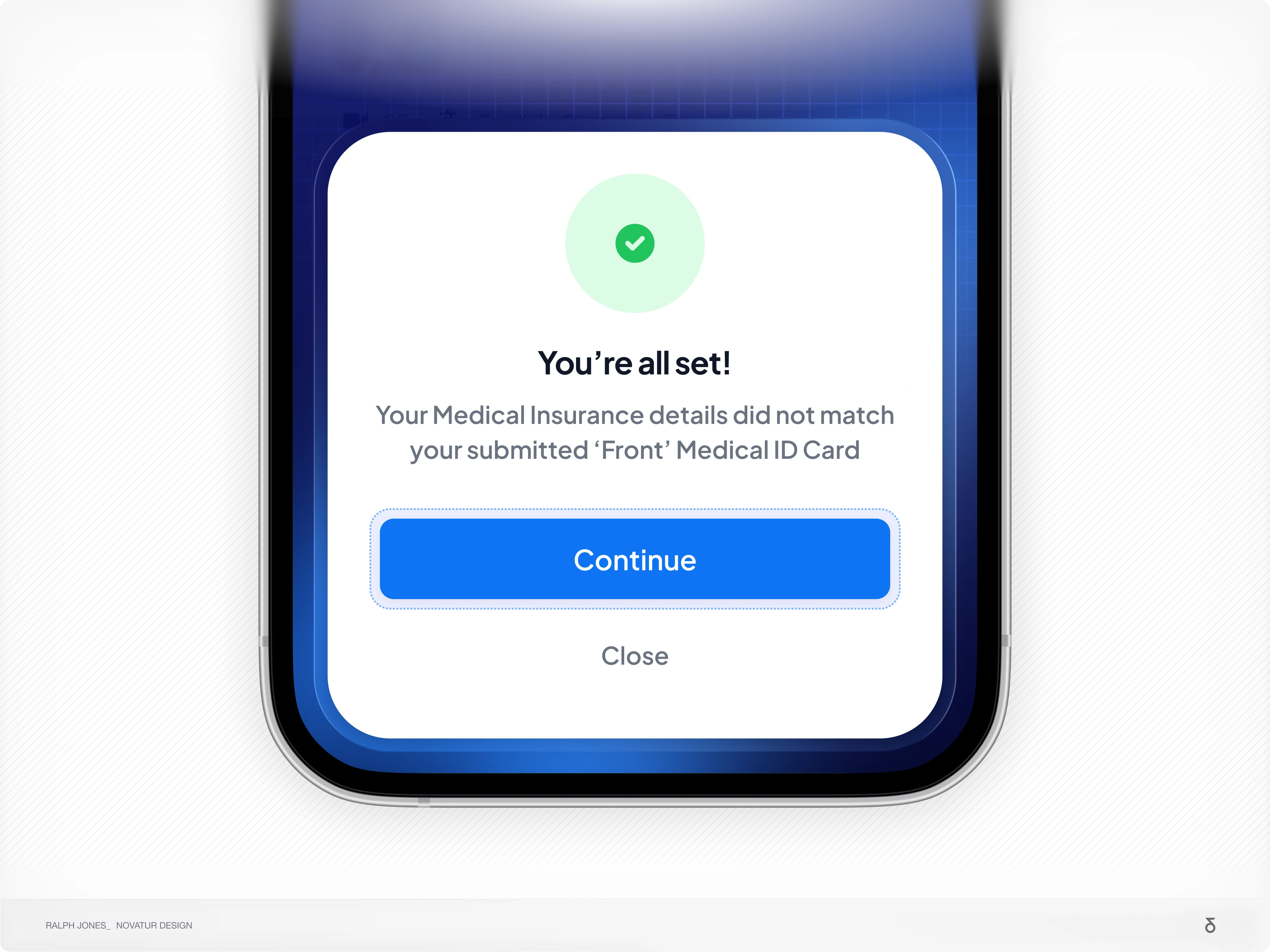 Redesigned verification and onboarding flows reduced friction across ID validation, selfie capture, and insurance entry, converting incomplete profiles into fully activated patients.