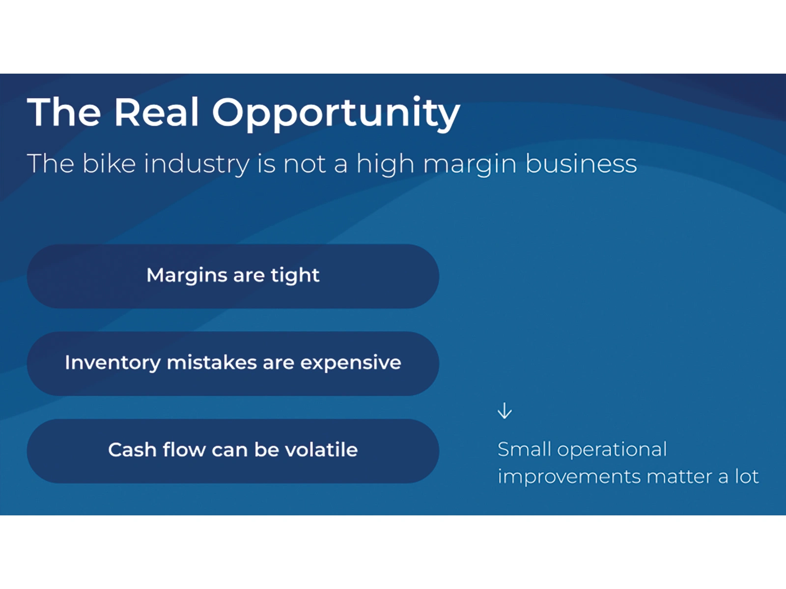 The deck supported a panel discussion on AI adoption in the bike industry, covering survey data, industry trends, and a proprietary framework for implementing AI across business operations. Delivered Friday for a Monday conference — on time, on brand, and ready to present.