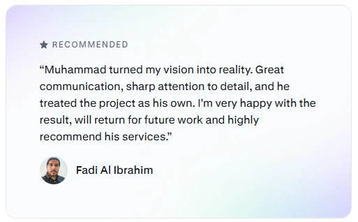Muhammad turned my vision into reality. Great communication, sharp attention to detail, and he treated the project as his own. I’m very happy with the result, will return for future work and highly recommend his services.