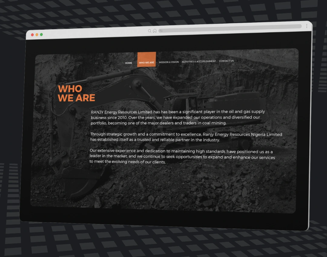 Designed and developed a professional corporate website for Ranjy Energy Resources Limited, a major player in Nigeria's oil and gas supply industry with a coal mining operation spanning 3,000,000 square meters and a monthly production of 15,000 tons.