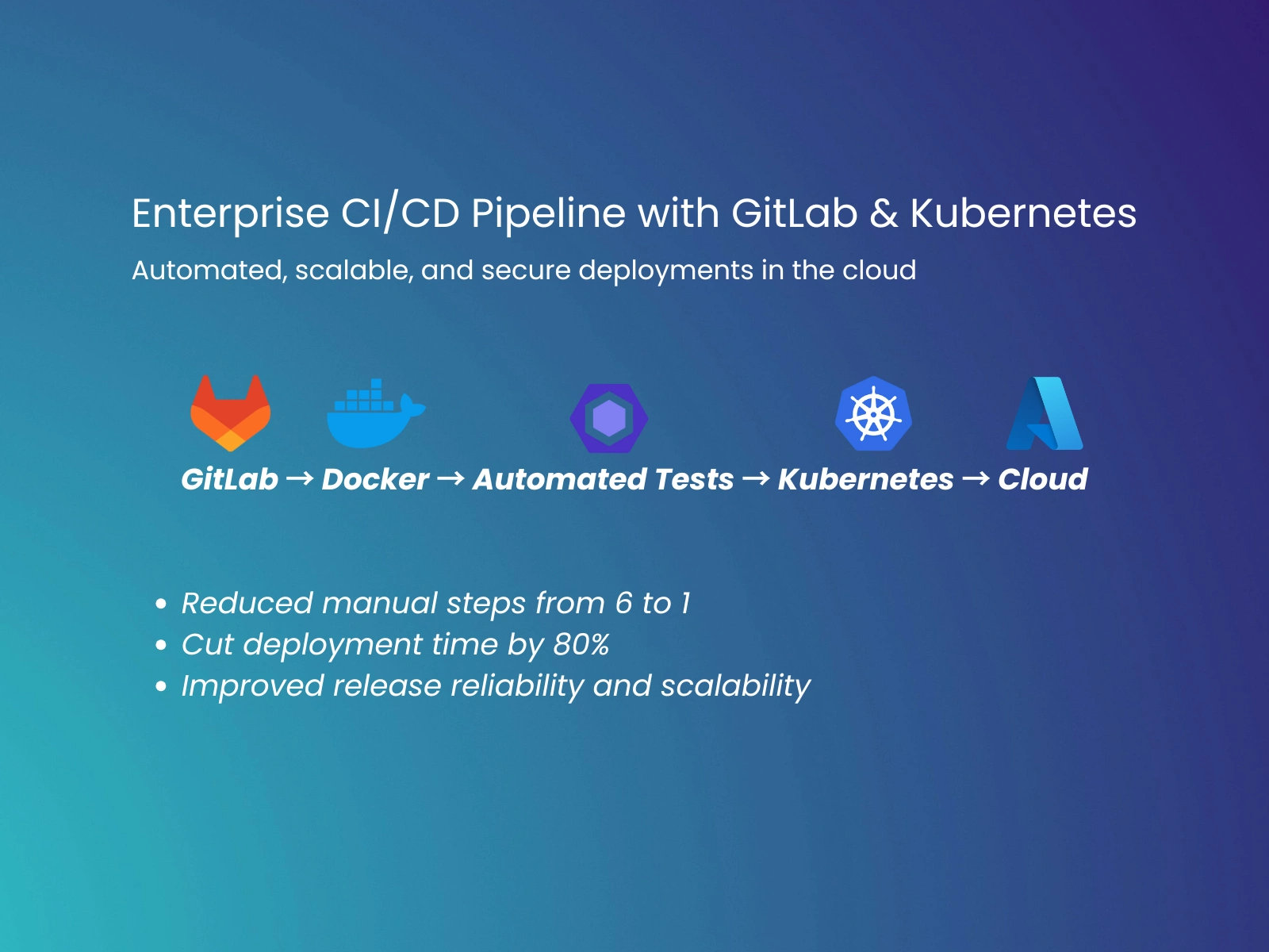 Implemented a fully automated CI/CD pipeline using GitLab, Docker, and Kubernetes for a large-scale cloud application. The pipeline included containerization, automated testing, and deployment to a scalable Kubernetes cluster, initially on Azure and later migrated to Oracle Cloud Infrastructure (OCI) for production workloads. This setup reduced manual release steps from 6 to 1, cut deployment time by 80%, and improved release reliability and scalability.