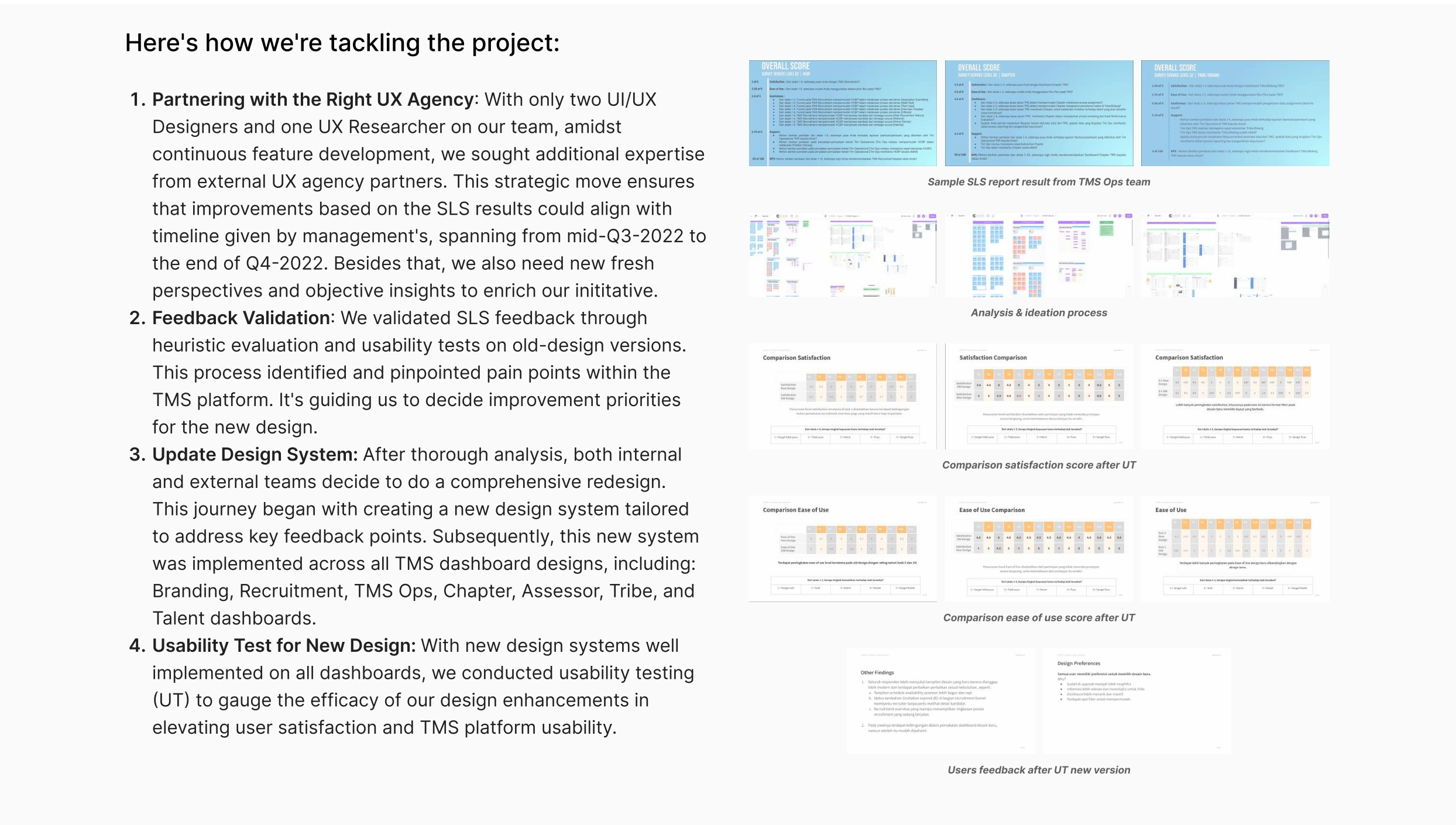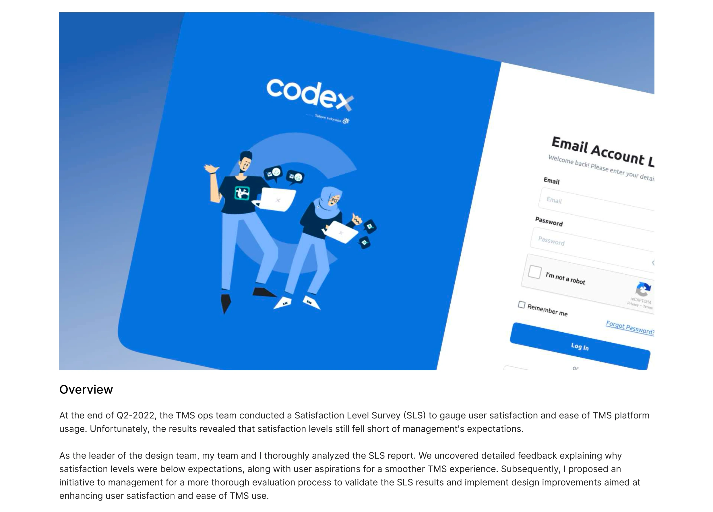 Led a deep review of low TMS satisfaction scores and launched a full evaluation initiative, uncovering key issues and driving targeted UX improvements.