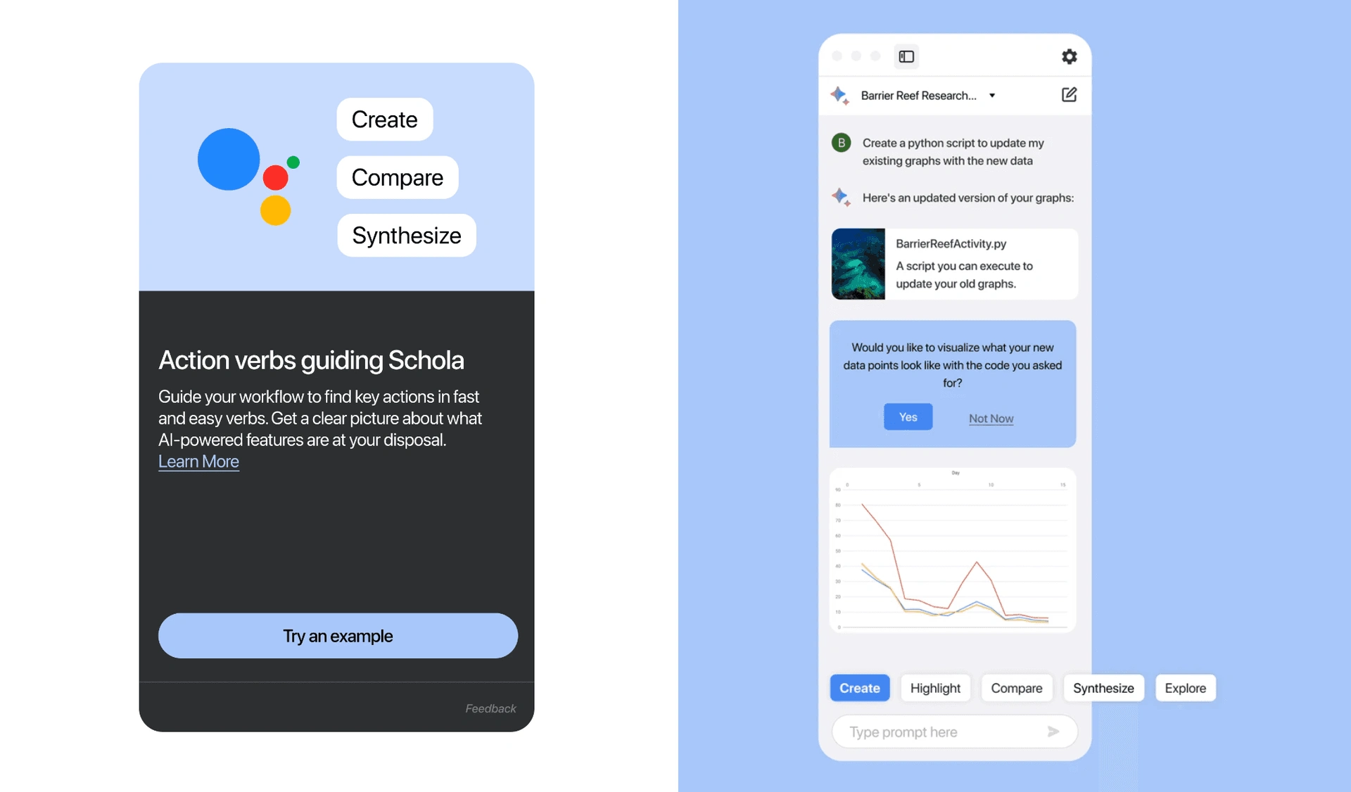 Implementation: Developed Schola as an AI-powered research assistant within a 10-day AI + UX Design challenge.