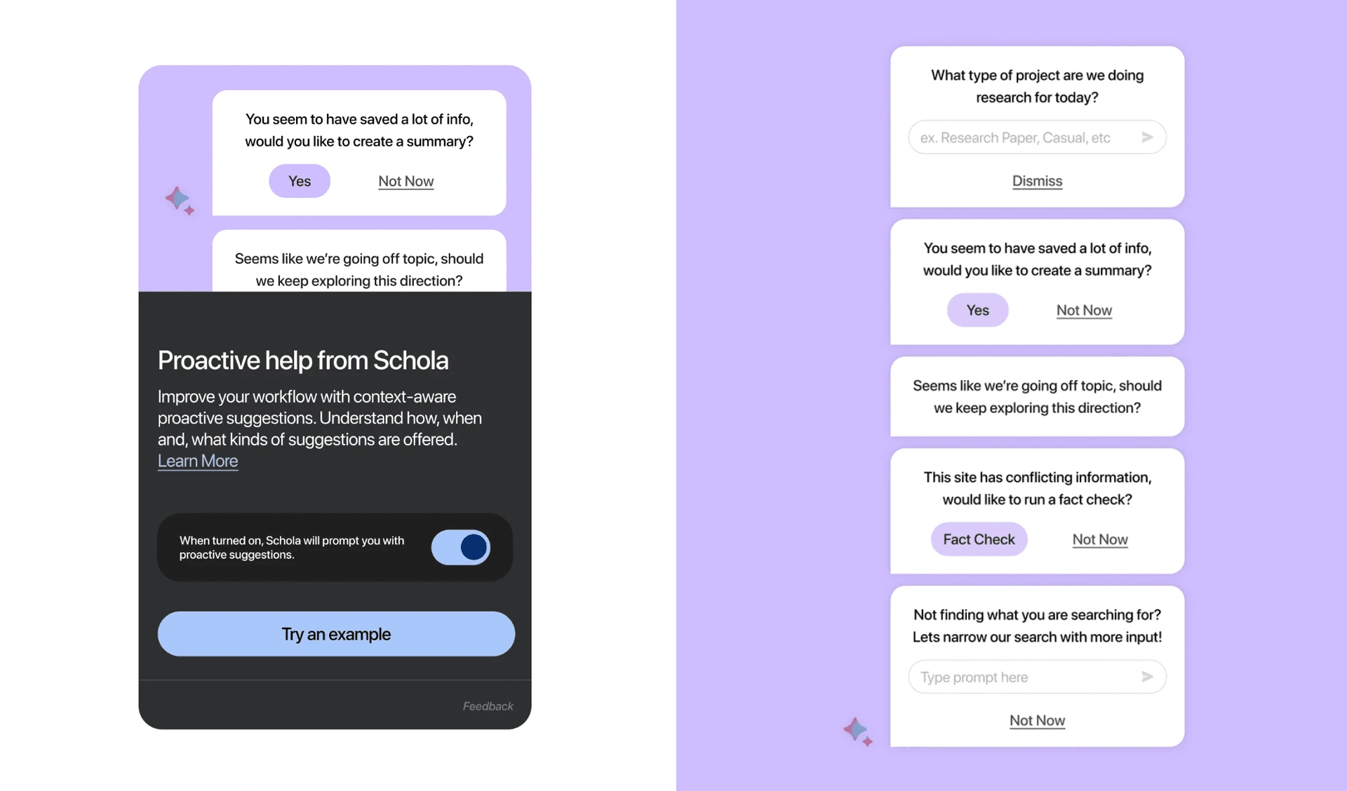 Proactive Interactions: Reduces user friction by initiating prompts and enhancing the research experience.