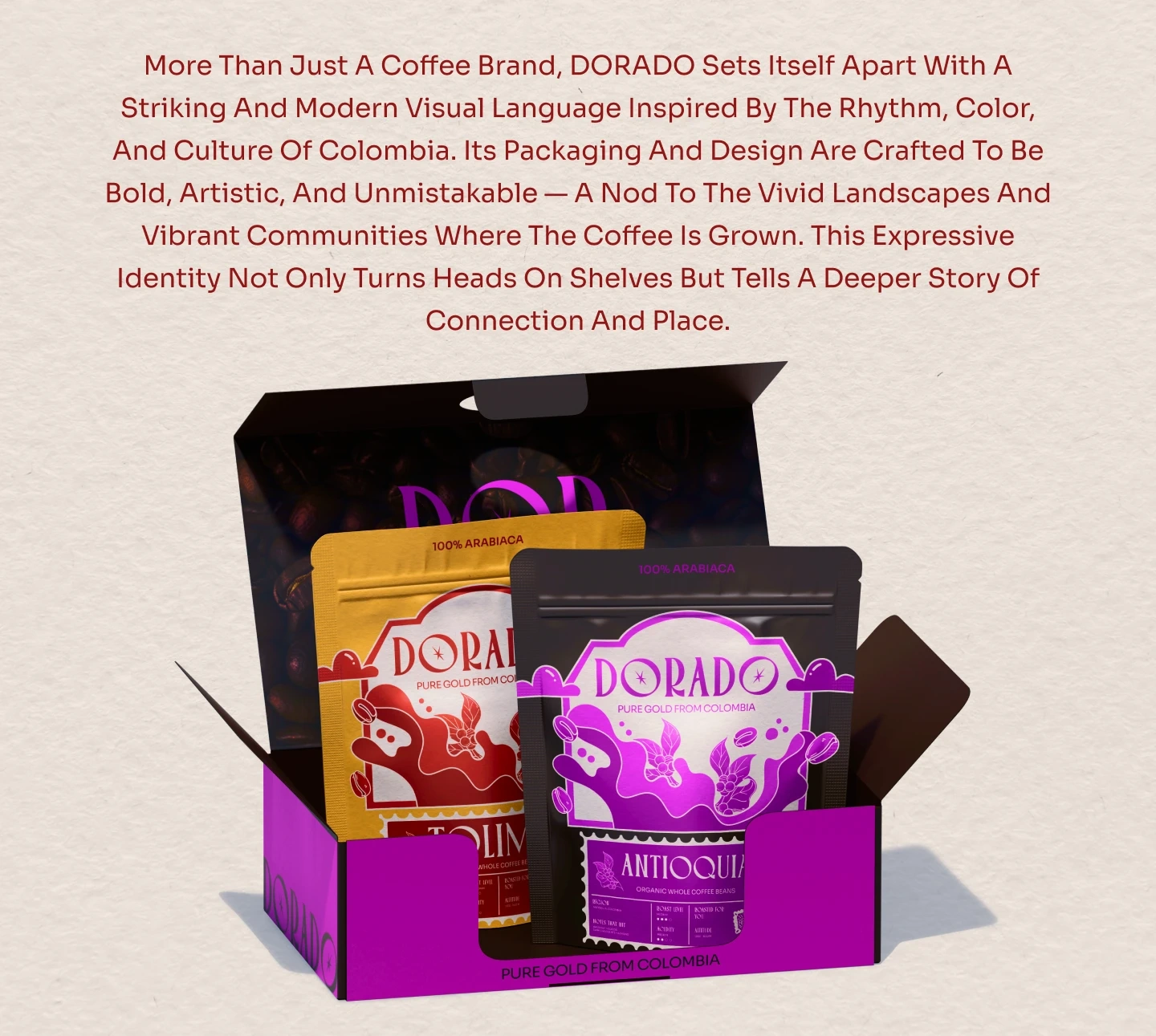 DORADO is a specialty Colombian coffee brand that captures the vibrant soul and rich legacy of Colombia’s coffee-growing heritage.