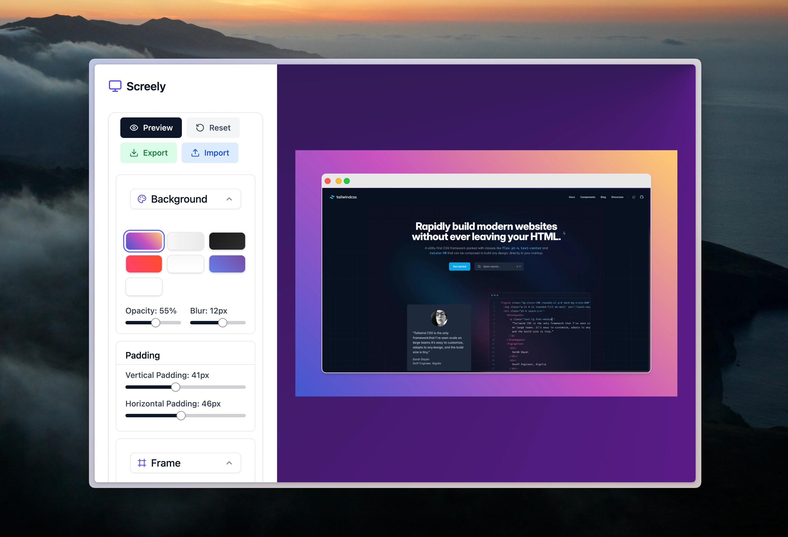 Screely UI is a web-based utility that allows users to transform raw screenshots into beautiful mockups effortlessly.