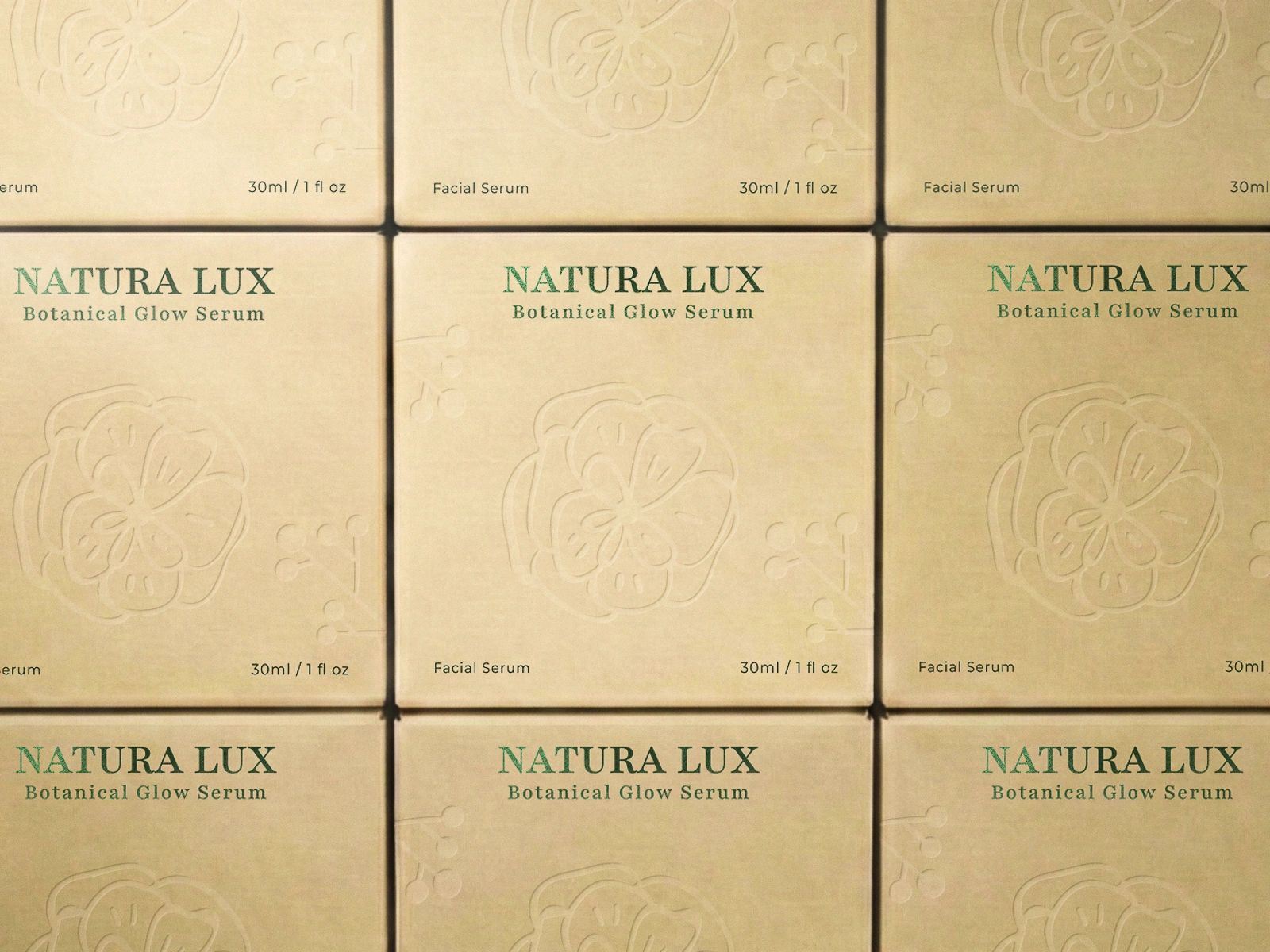 Natura Lux explores how brand identity translates into outer packaging, focusing on material, structure, and a refined, premium product experience.