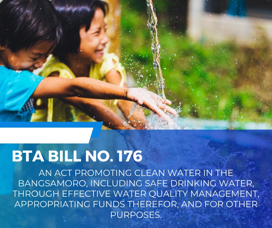 On March 15, Tuesday, I, along with Bangsamoro Parliament Member Engr. Baintan Ampatuan filed the BTA Bill No. 176, also known as “AN ACT PROMOTING CLEAN WATER IN THE BANGSAMORO, INCLUDING SAFE DRINKING WATER, THROUGH EFFECTIVE WATER QUALITY MANAGEMENT, APPROPRIATING FUNDS THEREFOR, AND FOR OTHER PURPOSES.”