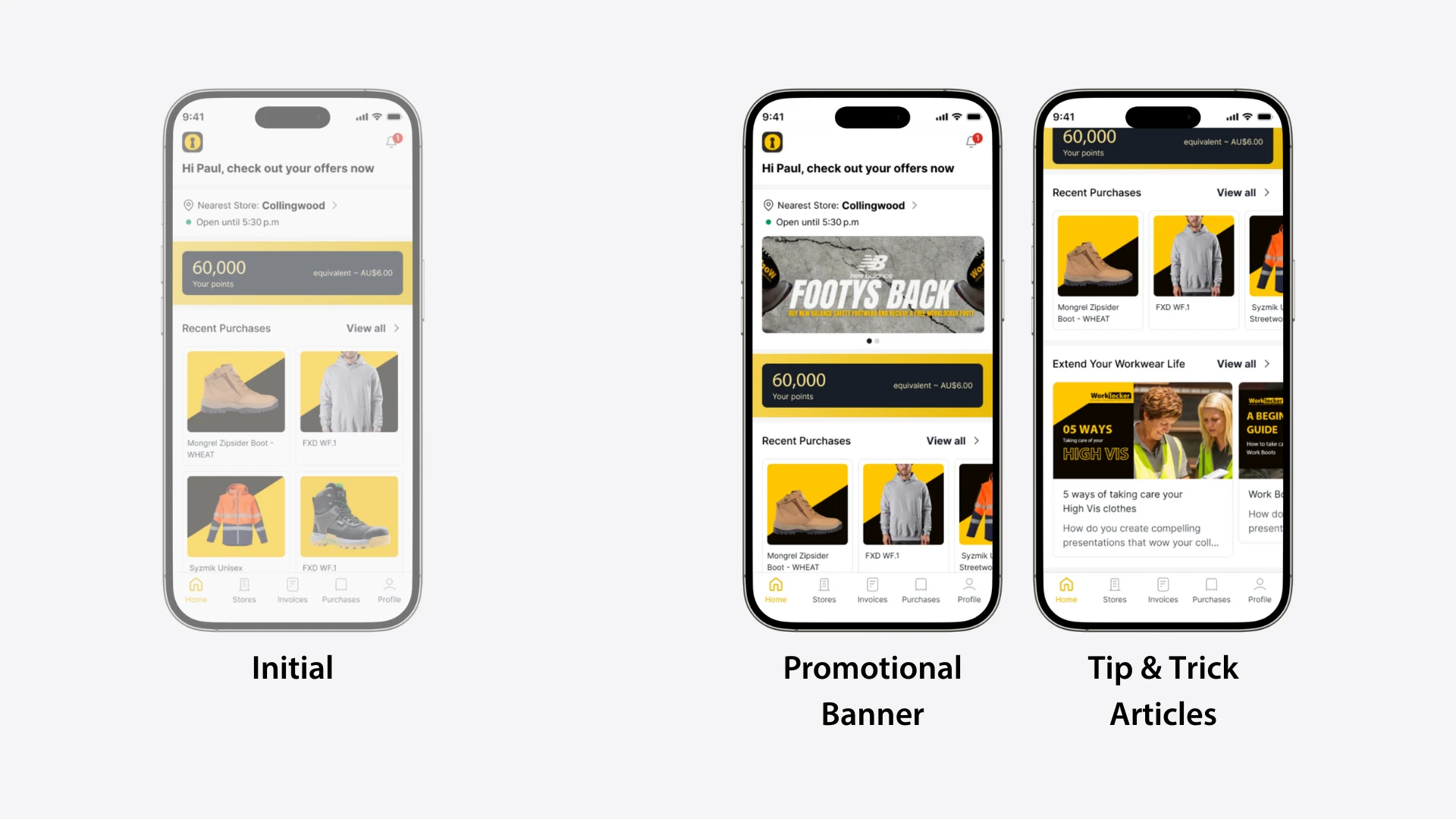 This mobile app is a part of their about-to-launch Loyalty Program. The initial concept was minimal, with little consideration for the user experience.