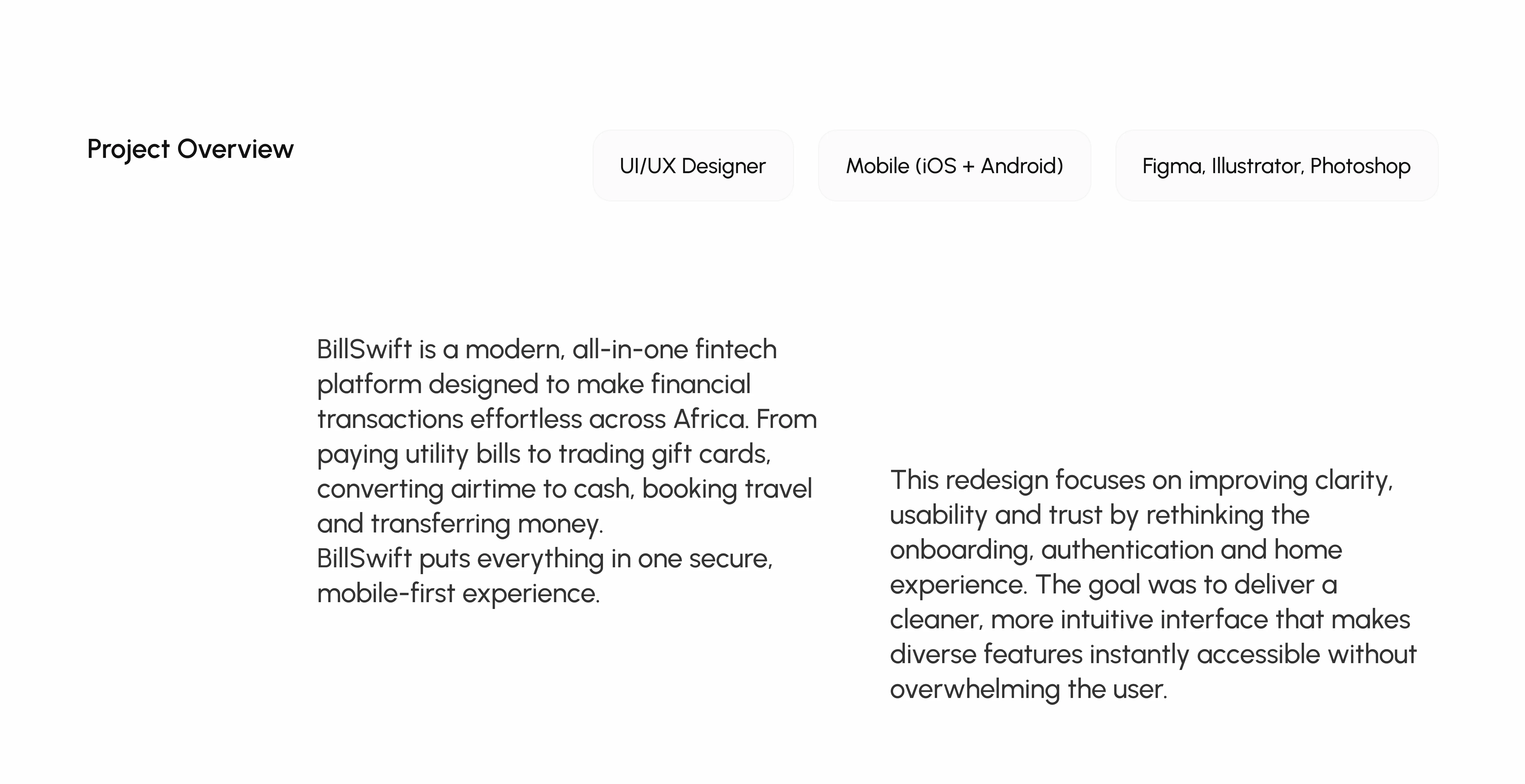 BillSwift is a conceptual design of a fintech super-app, built to simplify everyday transactions while keeping speed and trust at its core.