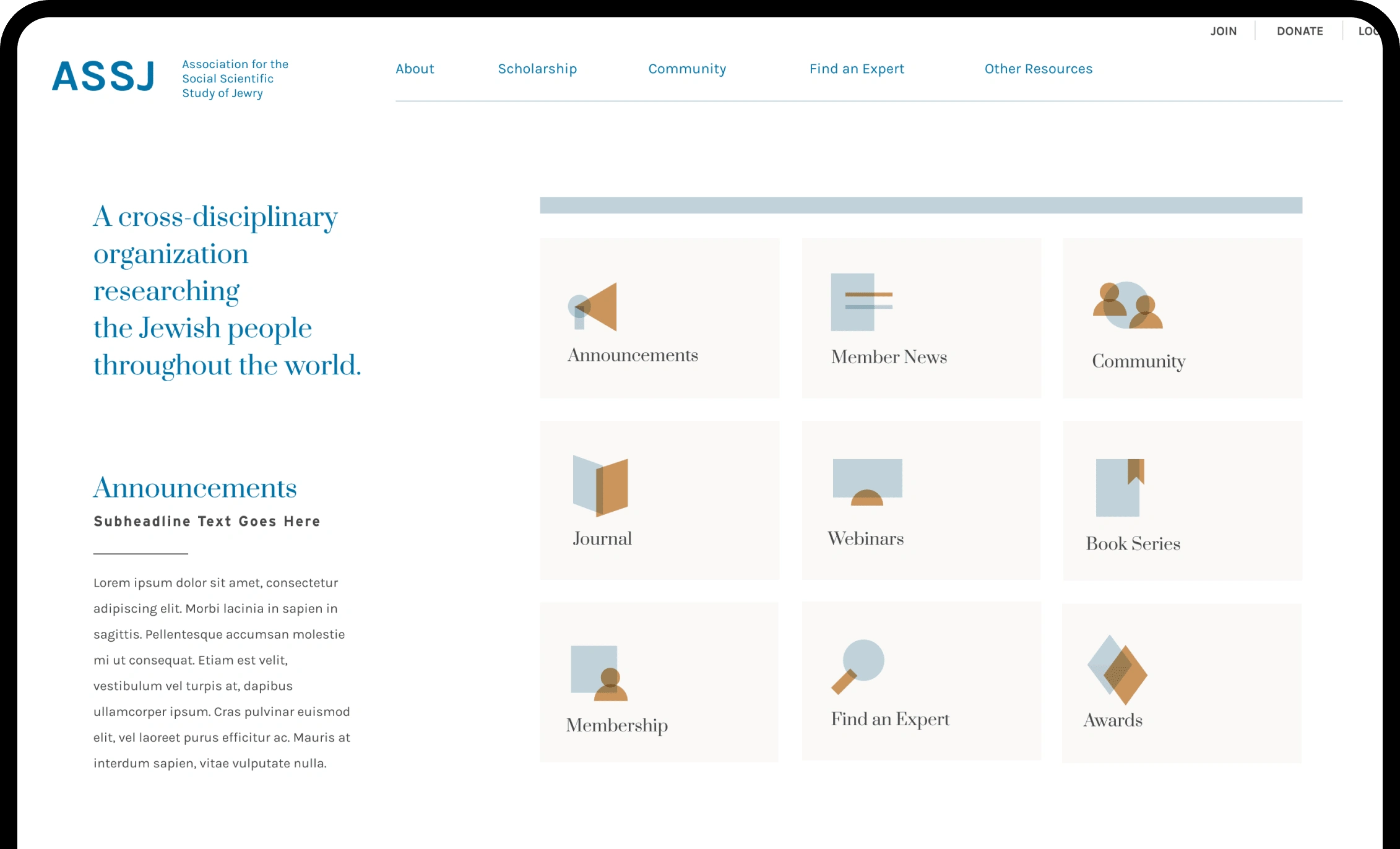 Created a brand, web design, and iconography for a non-profit that studies Jewry.
