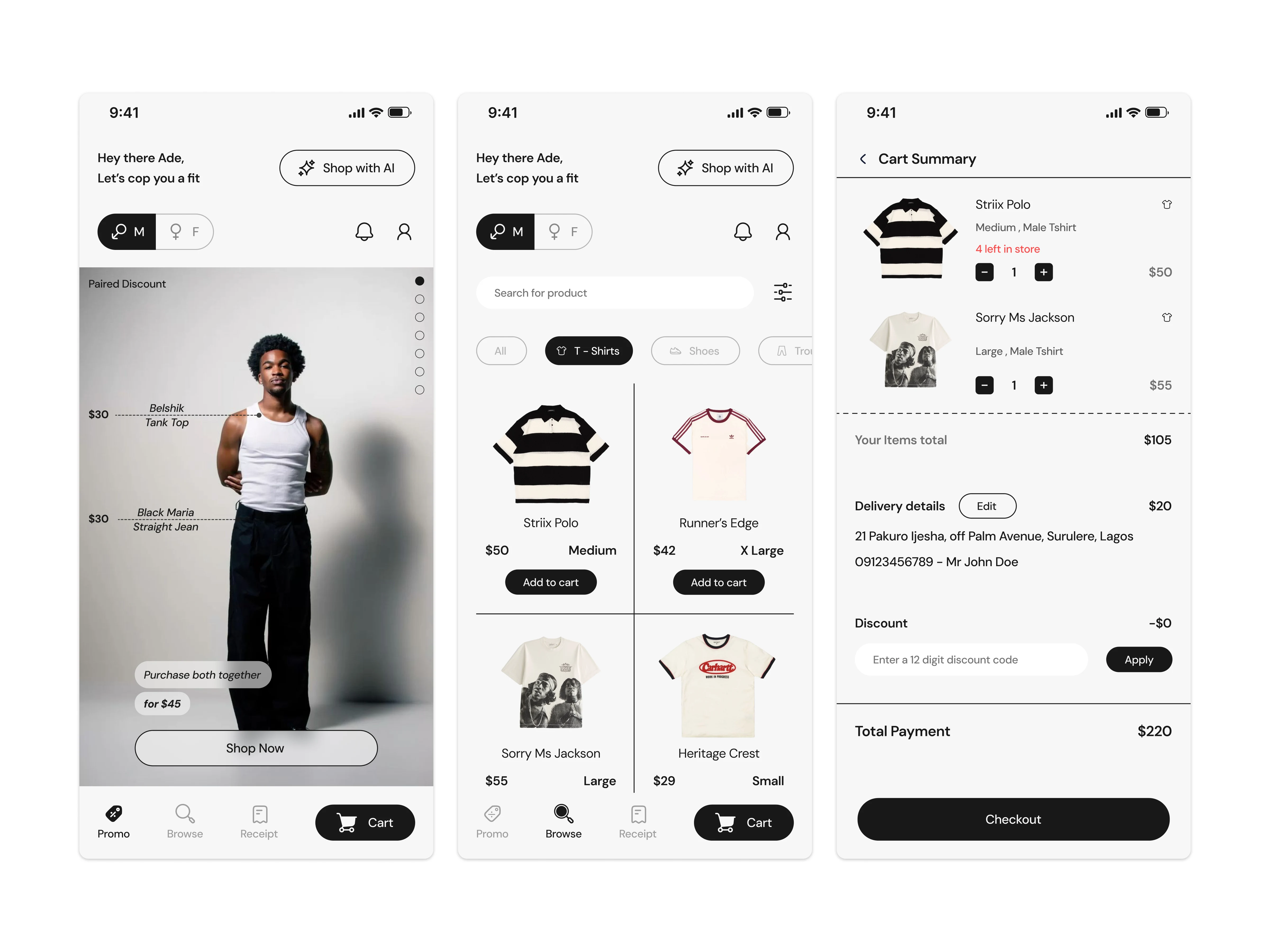 For the animated splash screen, the concept is rooted in the act of sewing. Since sewing relies on a thread to bring fabric together, I used the motion of a thread as the core visual metaphor for animating the brand name. The text appears as though it is being stitched into place, reinforcing the brand’s connection to clothing and craftsmanship. This approach gives the animation a sense of intention, process, and identity, rather than treating it as a purely decorative motion. This idea ultimately shaped the visual direction of Haso.