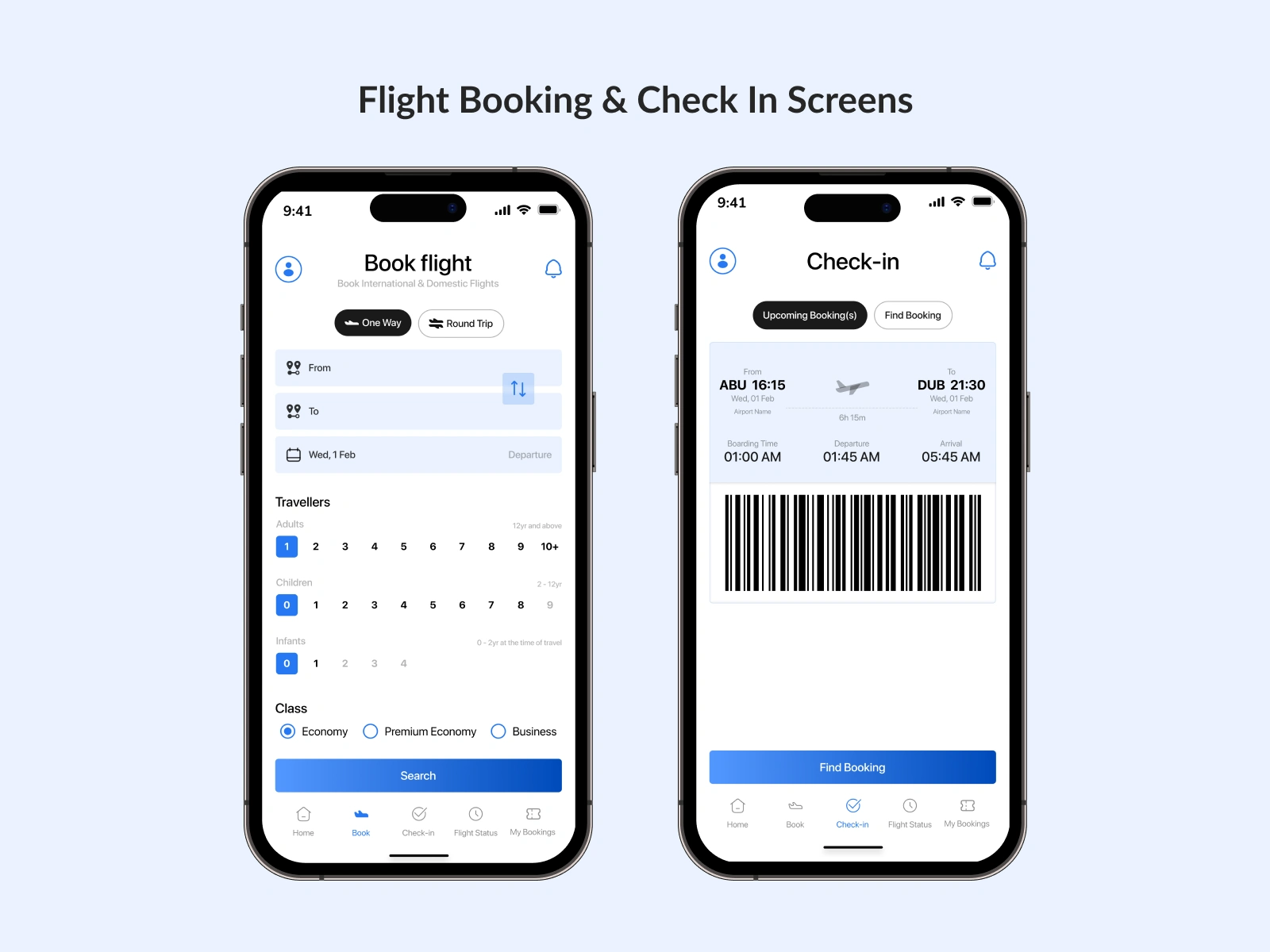 Flight Booking & Check in Screens