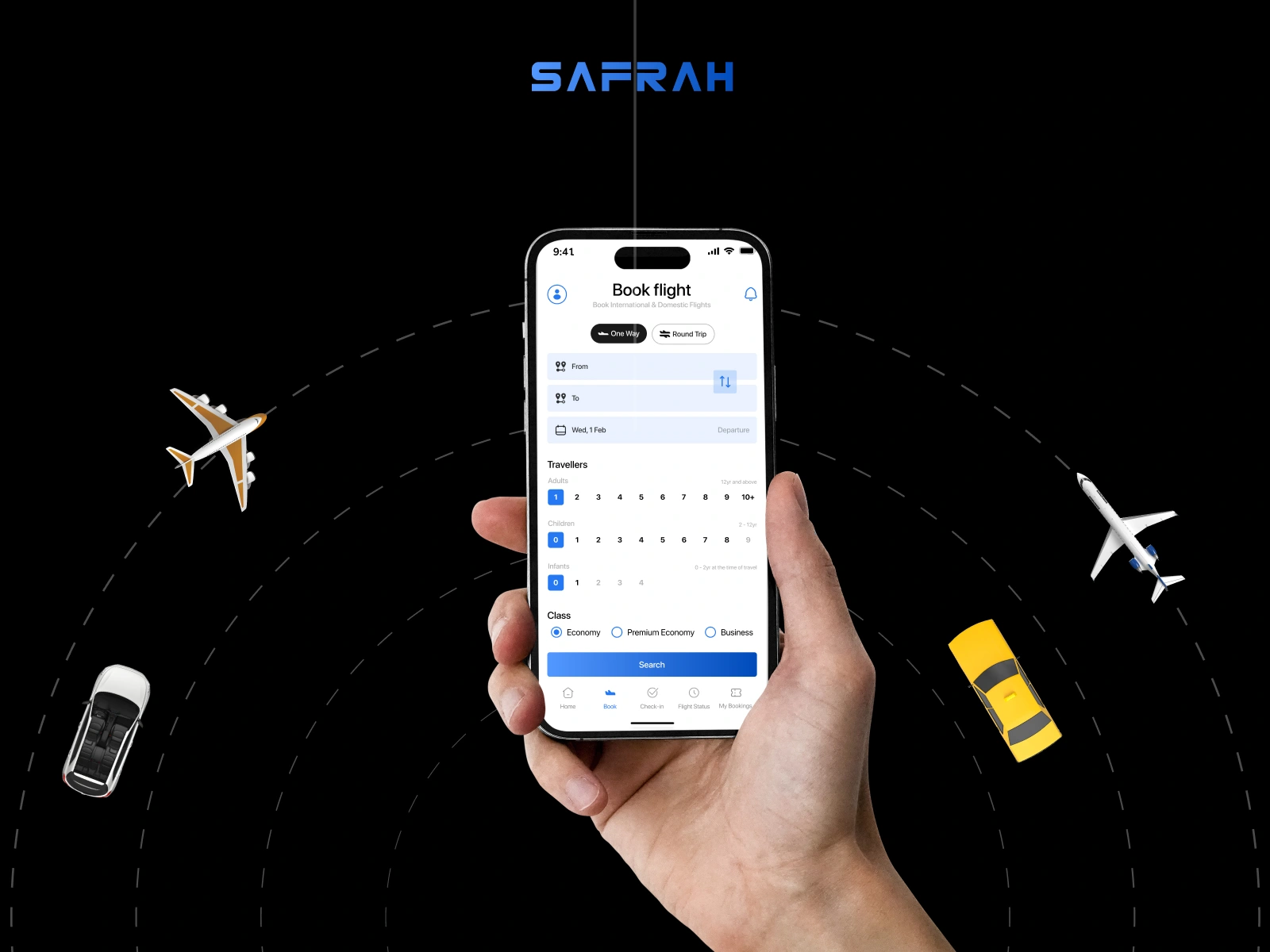Safrah presents a seamless, modern travel booking experience that:
