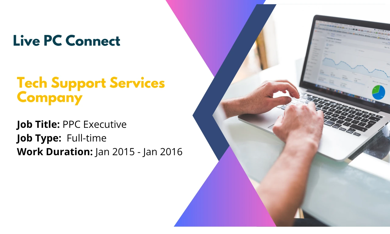 I managed and optimized campaigns across various platforms including Google Ads, Bing Ads, 7Search Ads, POP-UP Ads, and Facebook Ads.