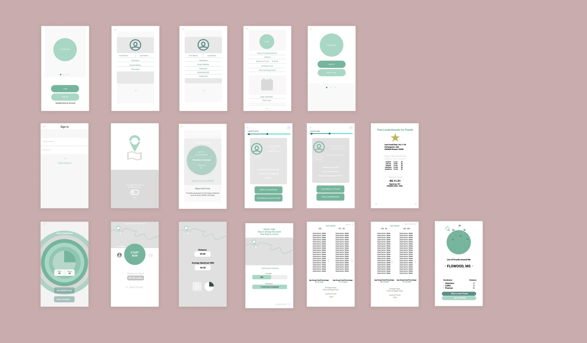 During the user journey, I conducted competitive analysis and found apps like Strava (running app that offers GPS tracking and monthly challenges with friends), Runtastic (story running), Runkeeper (social approach to running), MapMyRun (syncs with garmin, fitbit, jawbone, underarmor), Nike Run Club (running app focused on training), RunGo (discover new places while you run), Couch to 5k (running app that trains for a 5k), GoFundMe (a campaign app that allows people to raise money for events ranging from life events to accidents and illnesses), Charity Miles (for every mile you log with the app they donate 25 cents to a participating charity.)