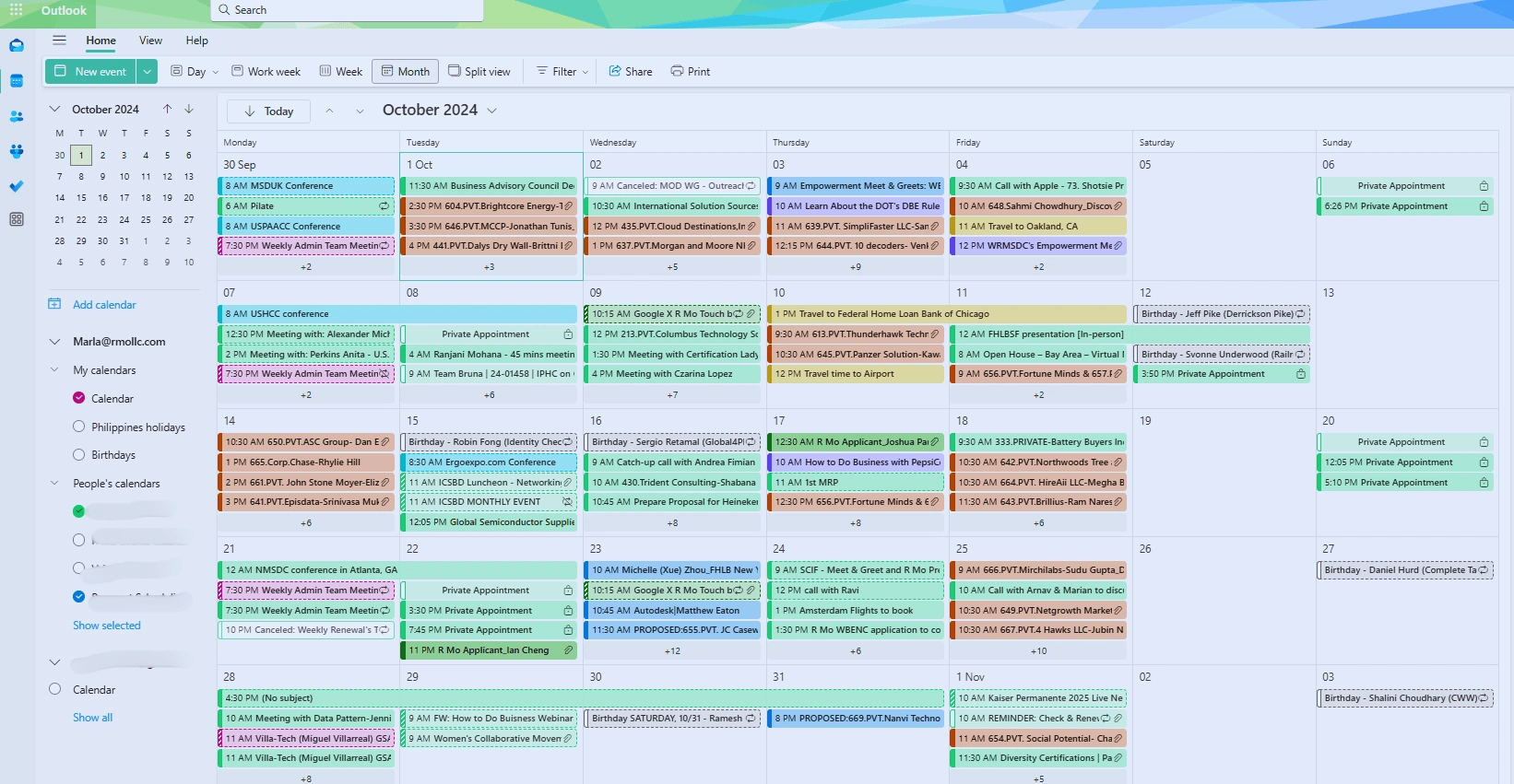 Managing an Outlook calendar involves scheduling and coordinating appointments. This includes sending reminders, updating invites, and adjusting the calendar.