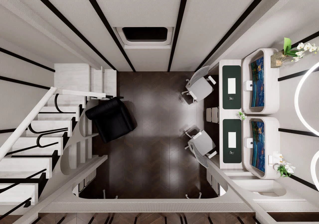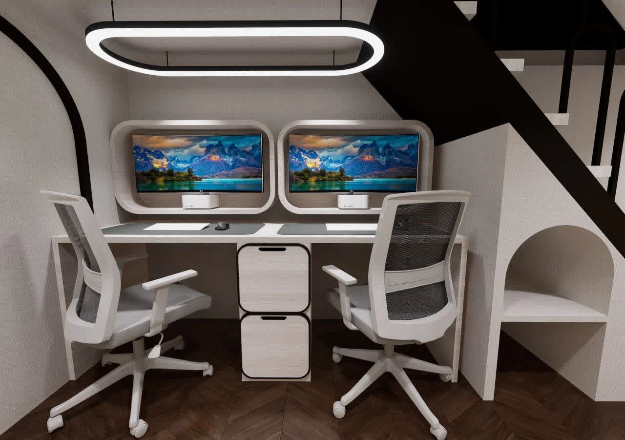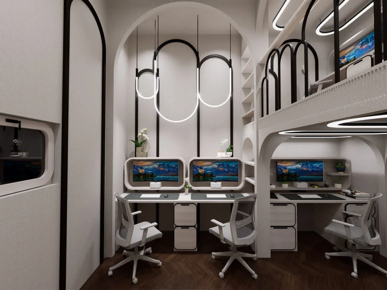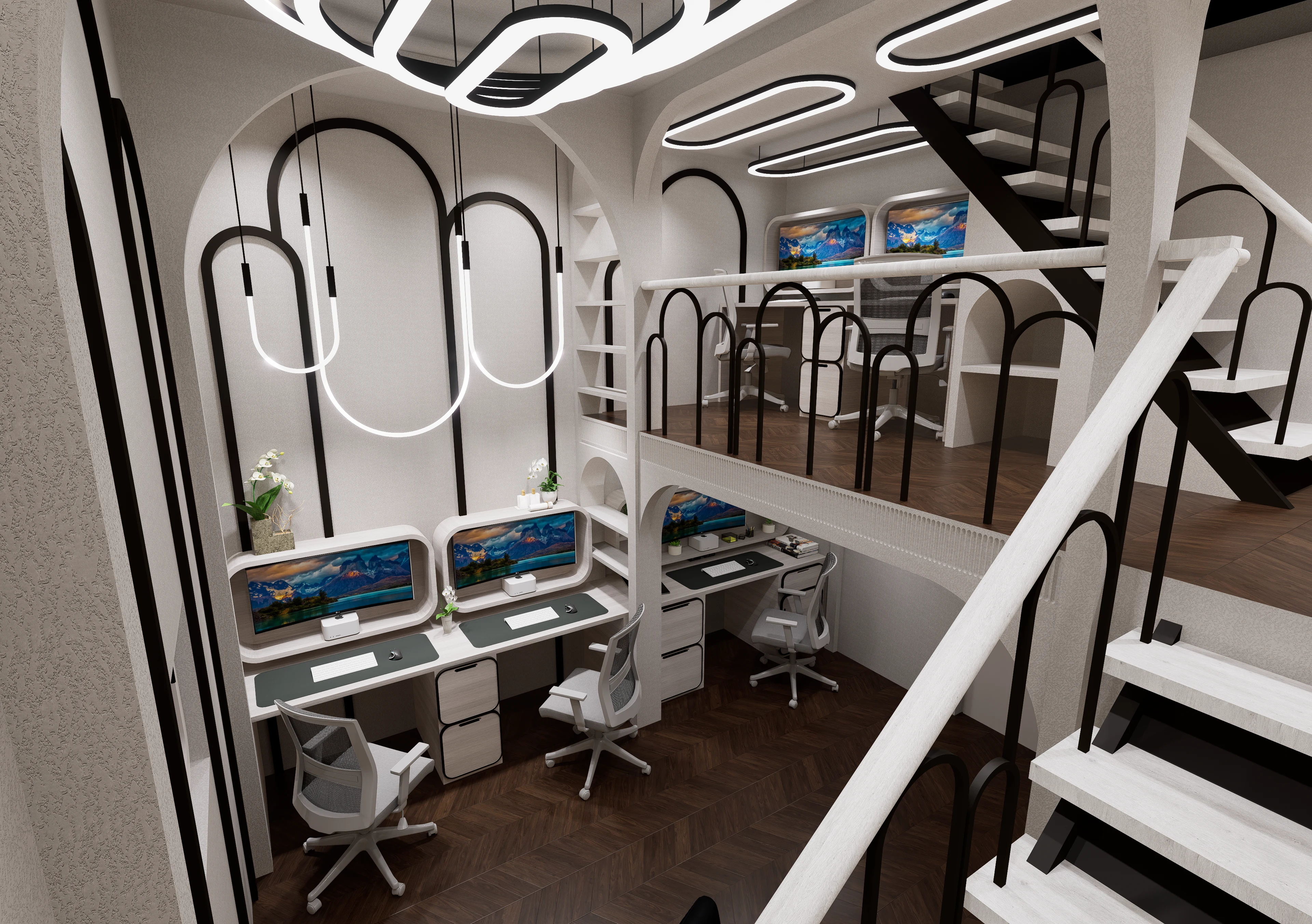 Office space in a relatively small area to maximize the productivity and utilization of space in neoclassic style and atmosphere.