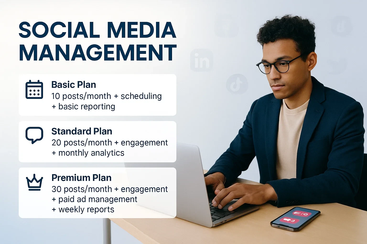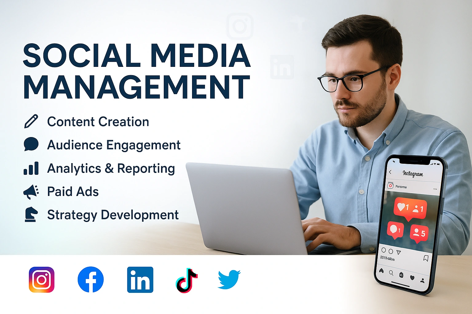 Social media is no longer optional — it’s the heartbeat of brand visibility and engagement. A well-managed presence on platforms like Instagram, Facebook, LinkedIn, and TikTok helps businesses connect with customers, build trust, and drive sales.