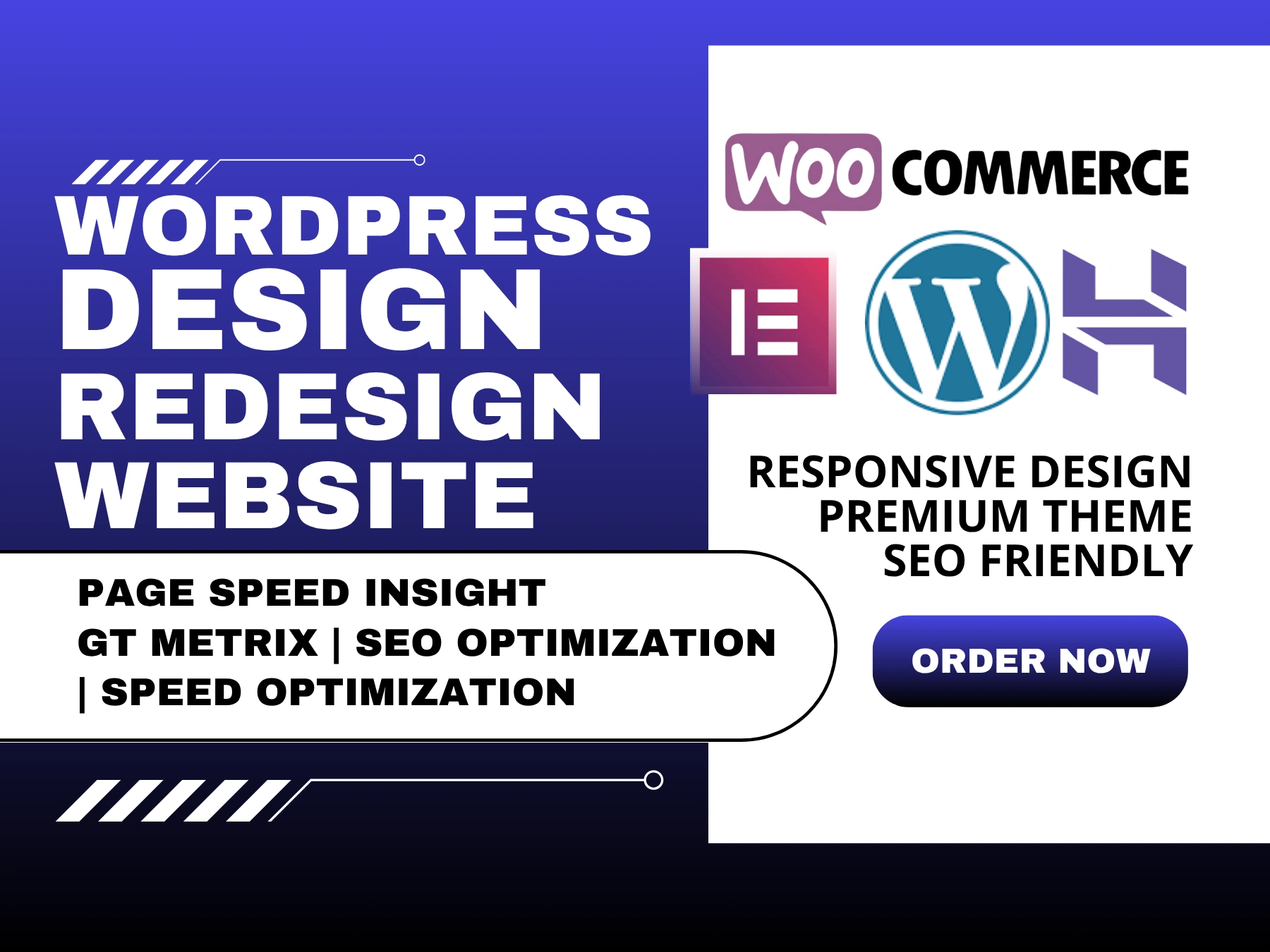 Design or redesign your WordPress website with Elementor, SEO optimization, fast load speed, mobile responsive UI, and premium theme setup.