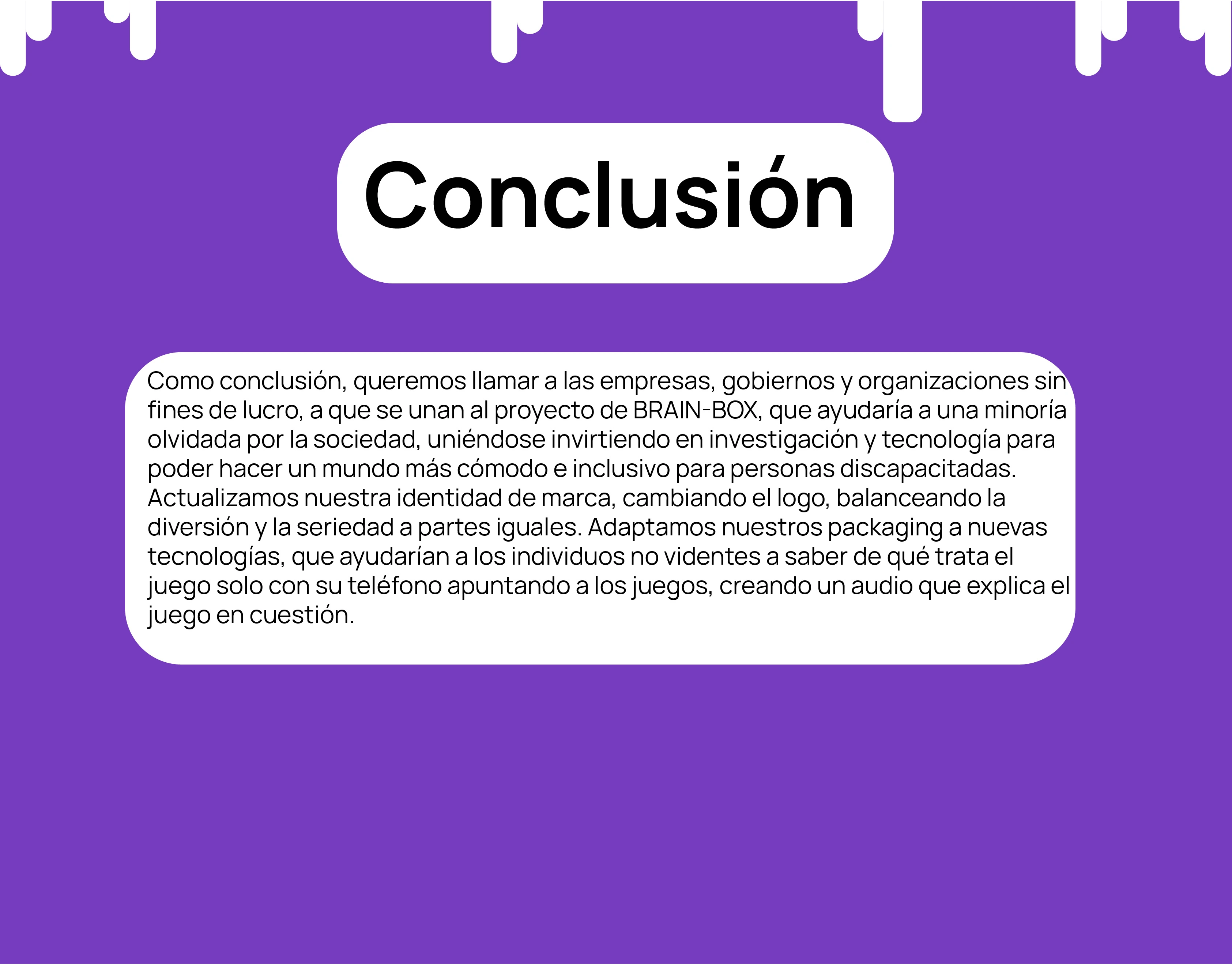 Proyecto universitario de un emprendimiento ficticio llamado "BRAIN-BOX" que busca crear juegos de mesa inclusivos