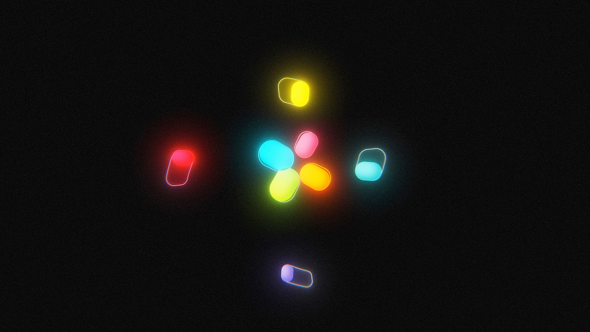 High-contrast, dark canvas that lets the icon colors and glow/light play read clearly.