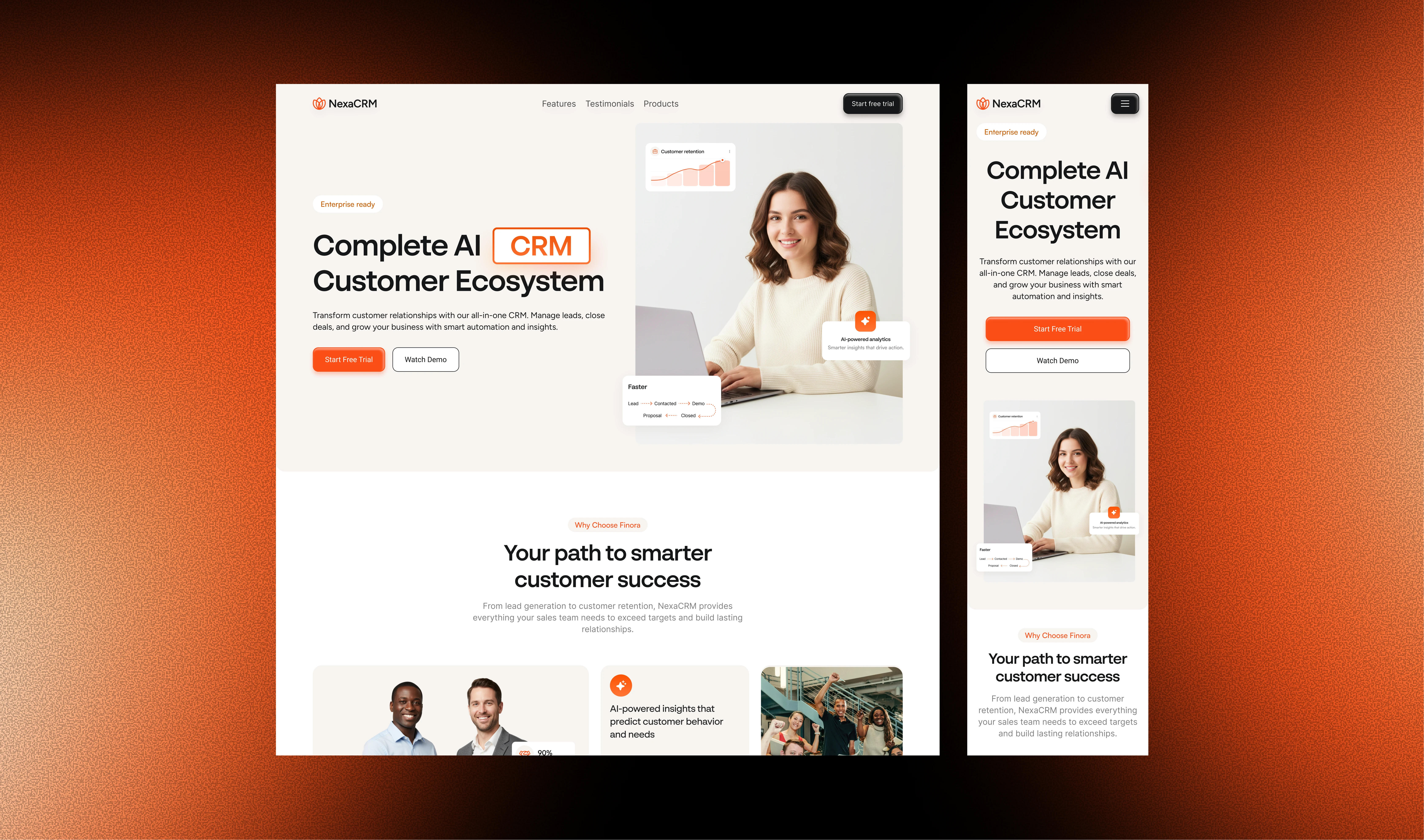 The final concept positions NexaCRM as a confident, modern CRM solution that communicates value quickly and supports fast decisions. By focusing on structure, messaging, and trust, the landing page turns a complex product into an approachable starting point.