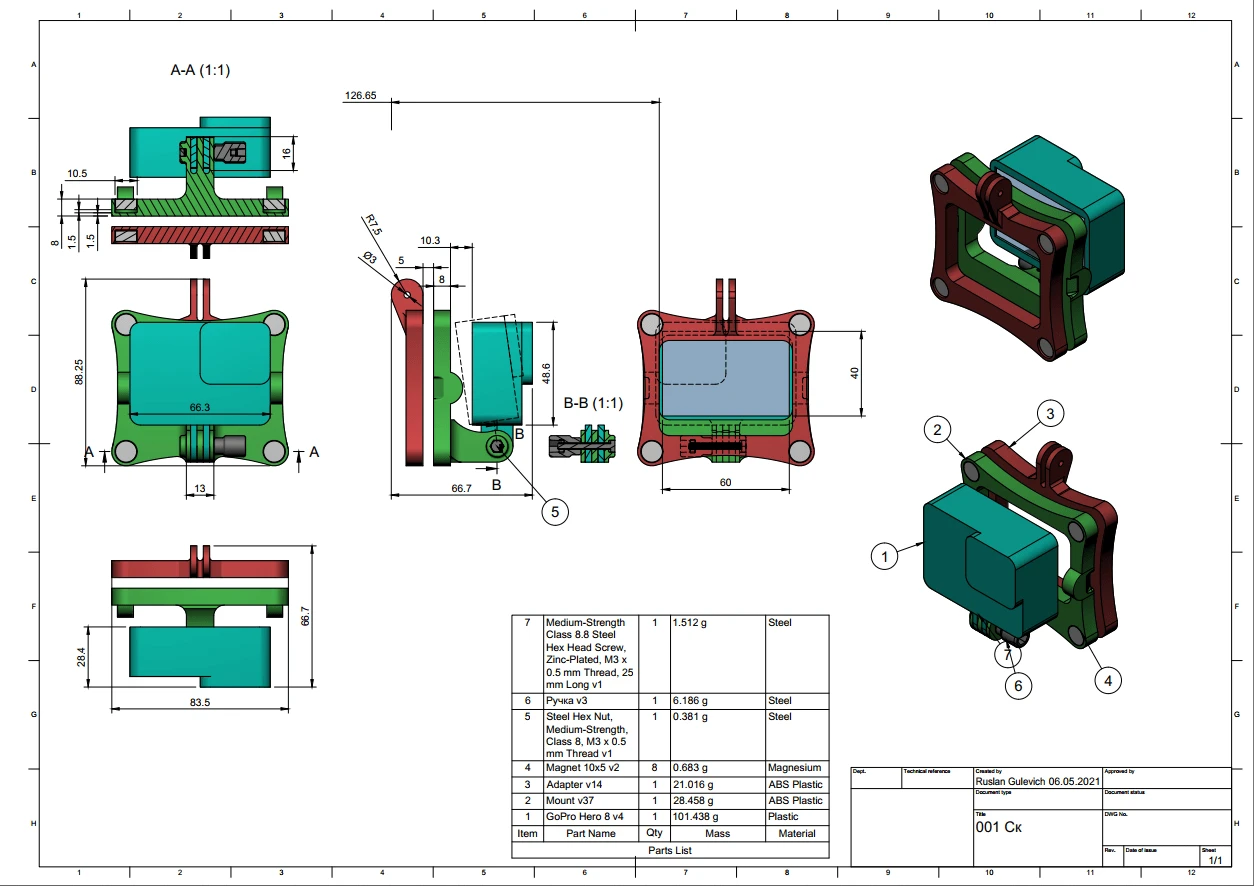 I made a magnetic holder for a GoPro camera for 3D printing