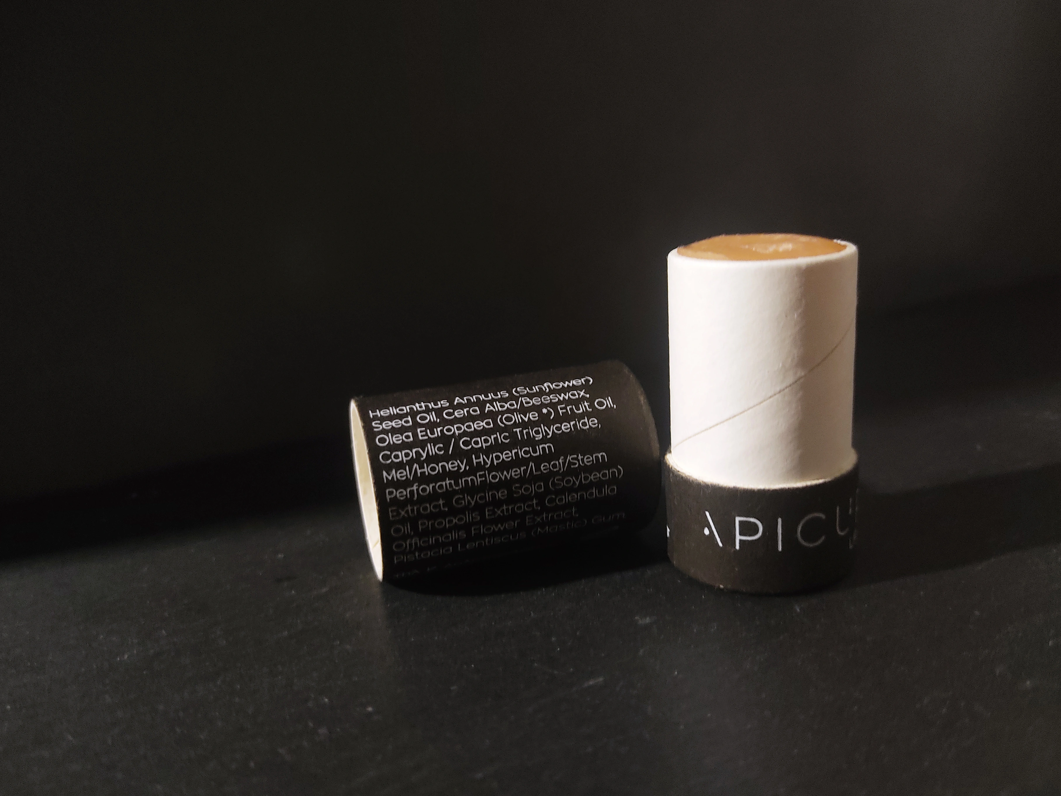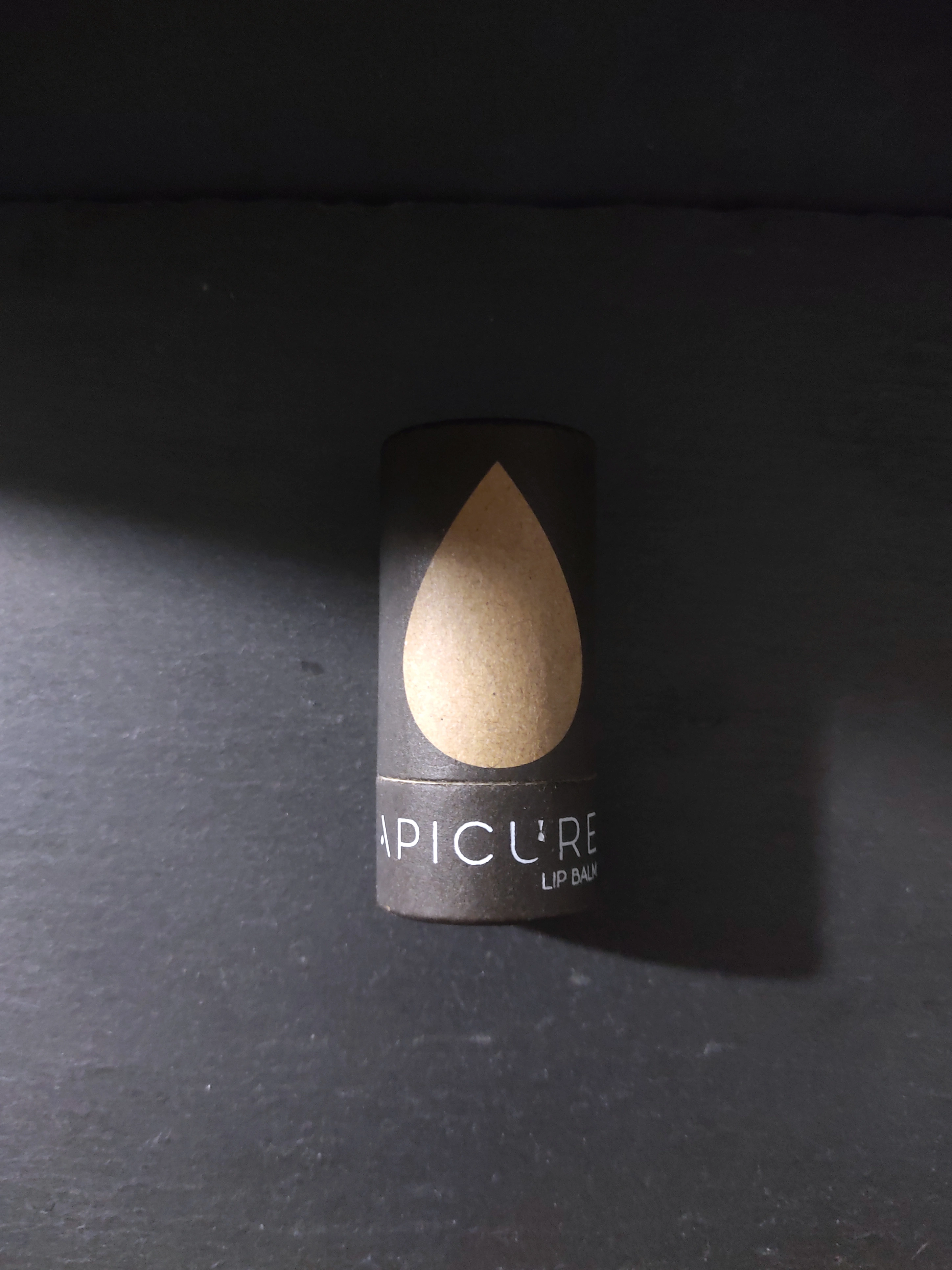 The Apicure lip balm was the first product to feature their new logo and also get a complete packaging redesign. The aim for the packing to reflect the all natural ingredients of the product. For that reason a kraft paper container was selected.