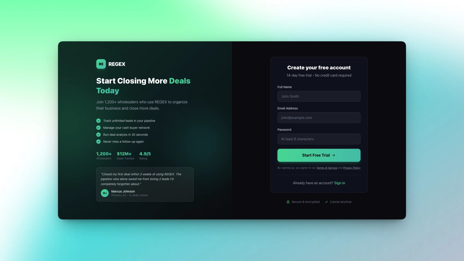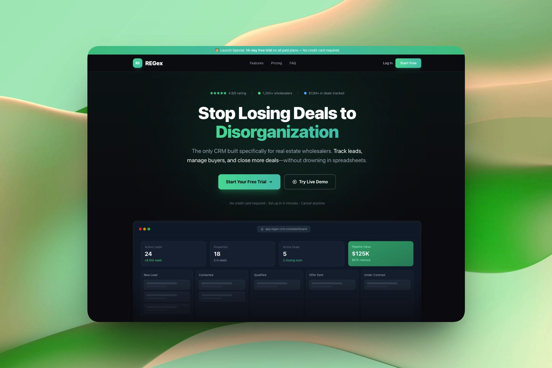 Designed and developed a high-converting landing page for REGex, a SaaS CRM targeting real estate.