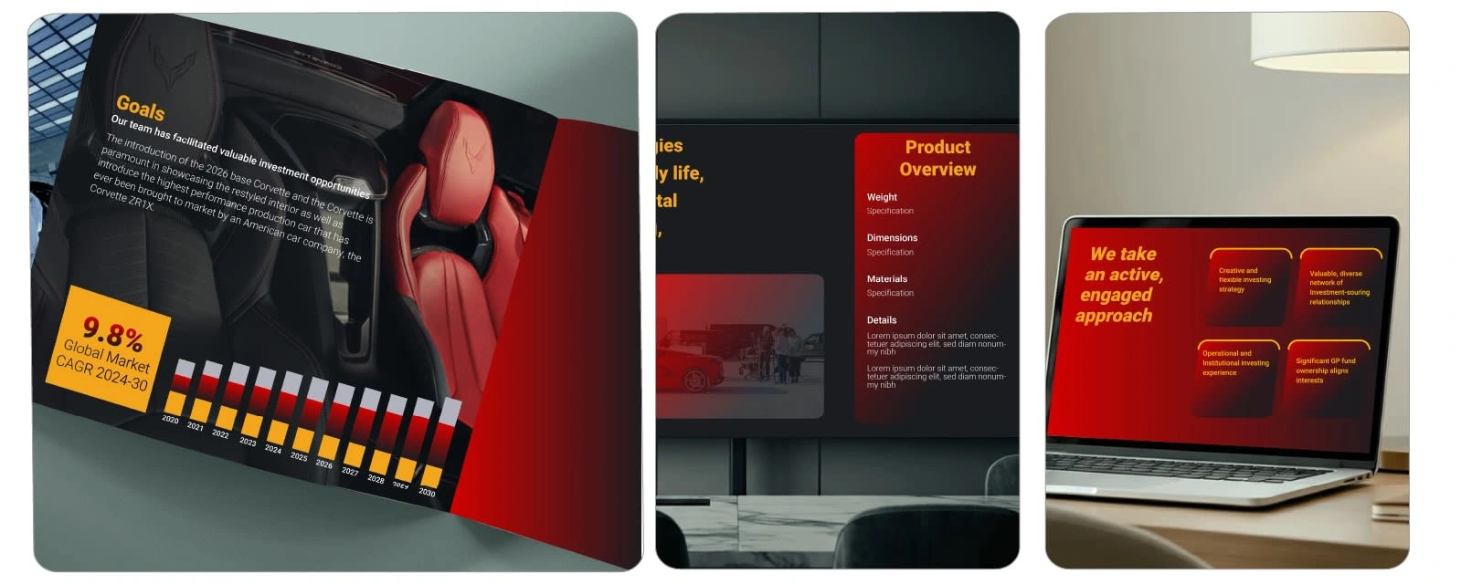 For the 2026 Corvette campaign with Director Ted Newport, the task wasn’t just to design slides—it was to translate a cinematic vision into a structured, high-impact presentation.