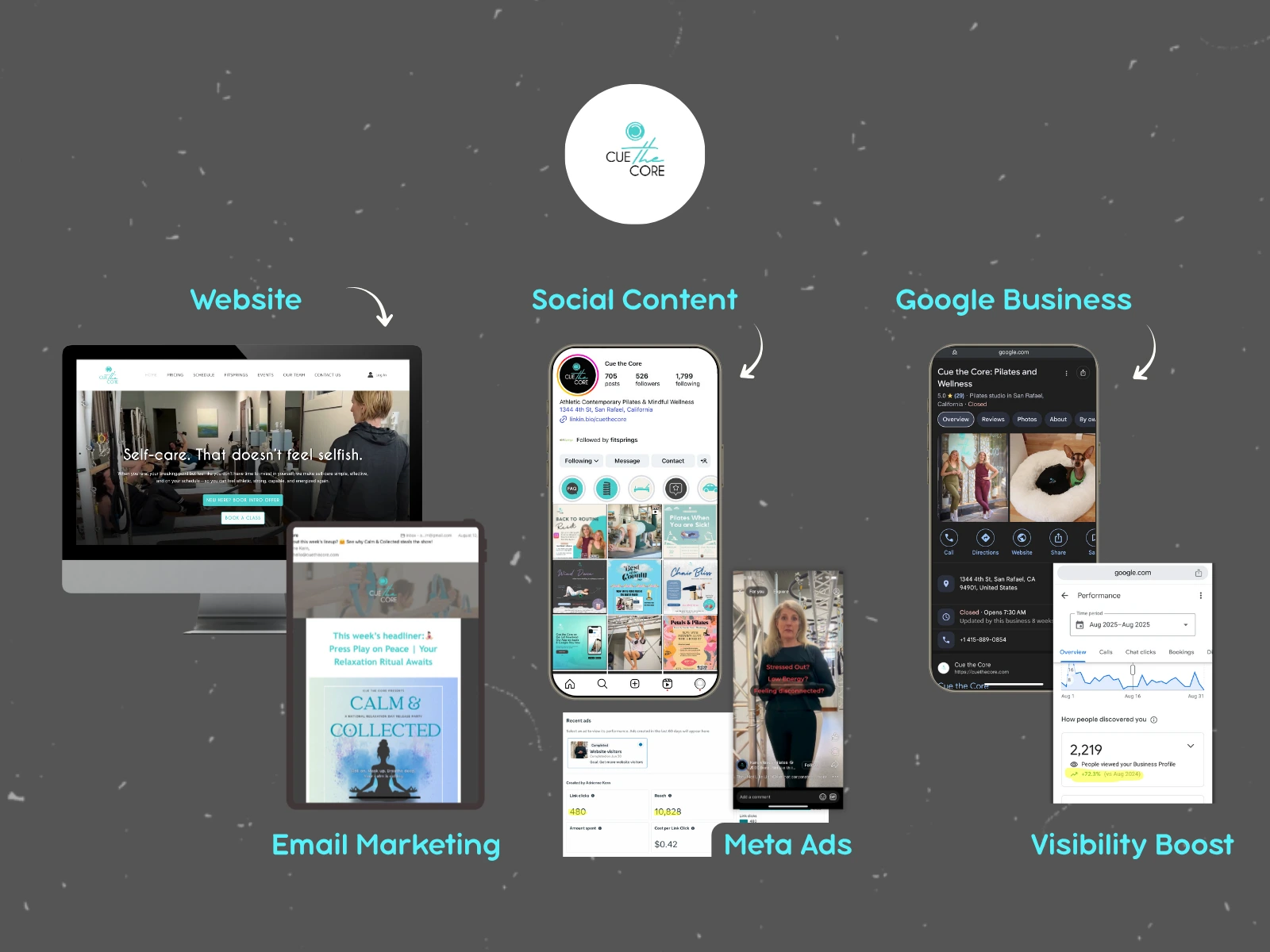 I partnered with Cue the Core, a Pilates studio in San Rafael, CA, led by Karen Lovelace, to enhance their online presence and community engagement. Using Arketa, I designed branded email campaigns, made website edits, implemented email automations, and created cohesive graphics for both online and marketing materials. Additionally, I developed a social media strategy to showcase Cue the Core’s inclusivity, promotions, and vibrant events like book clubs, retreats, and themed classes.