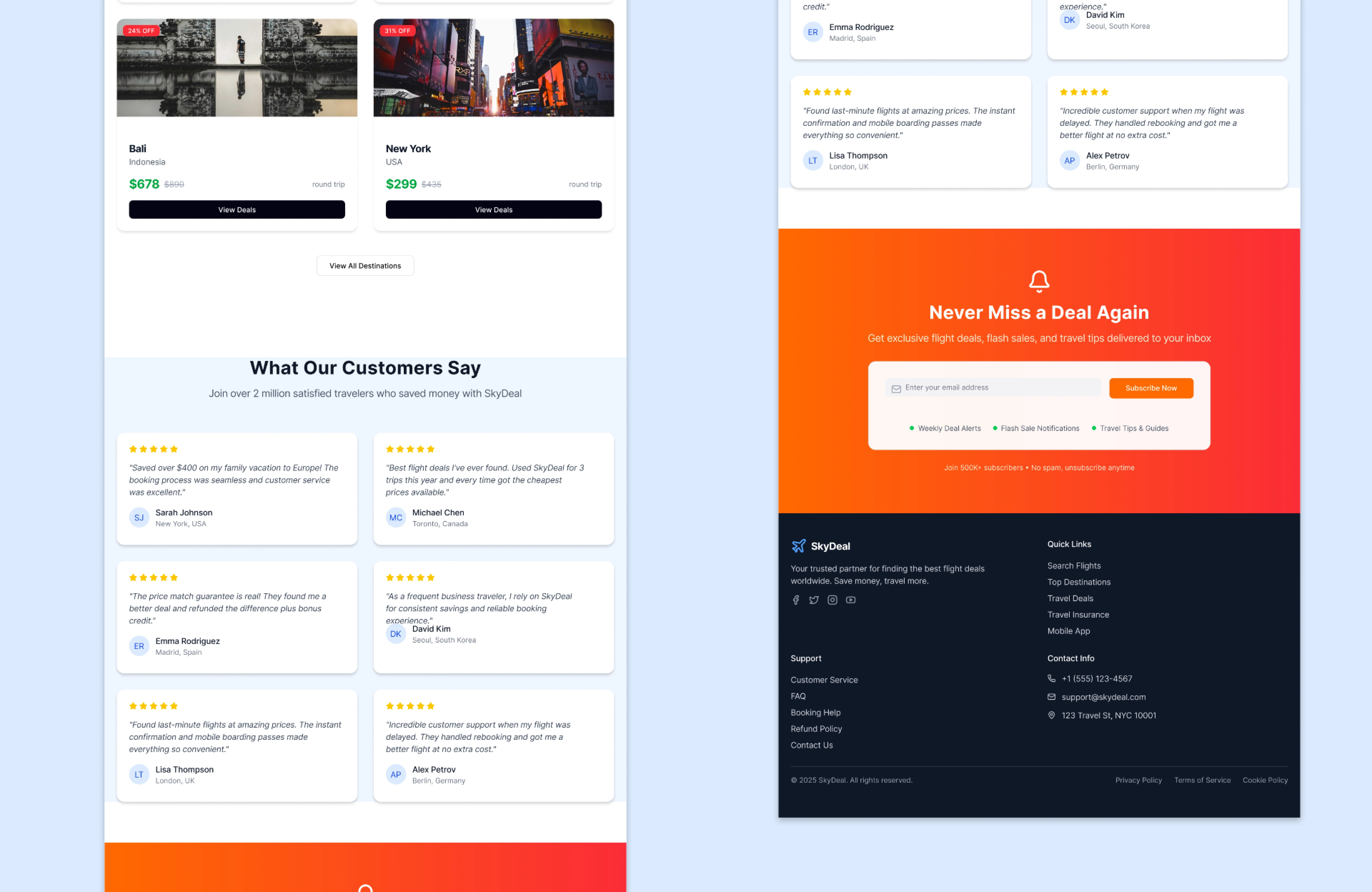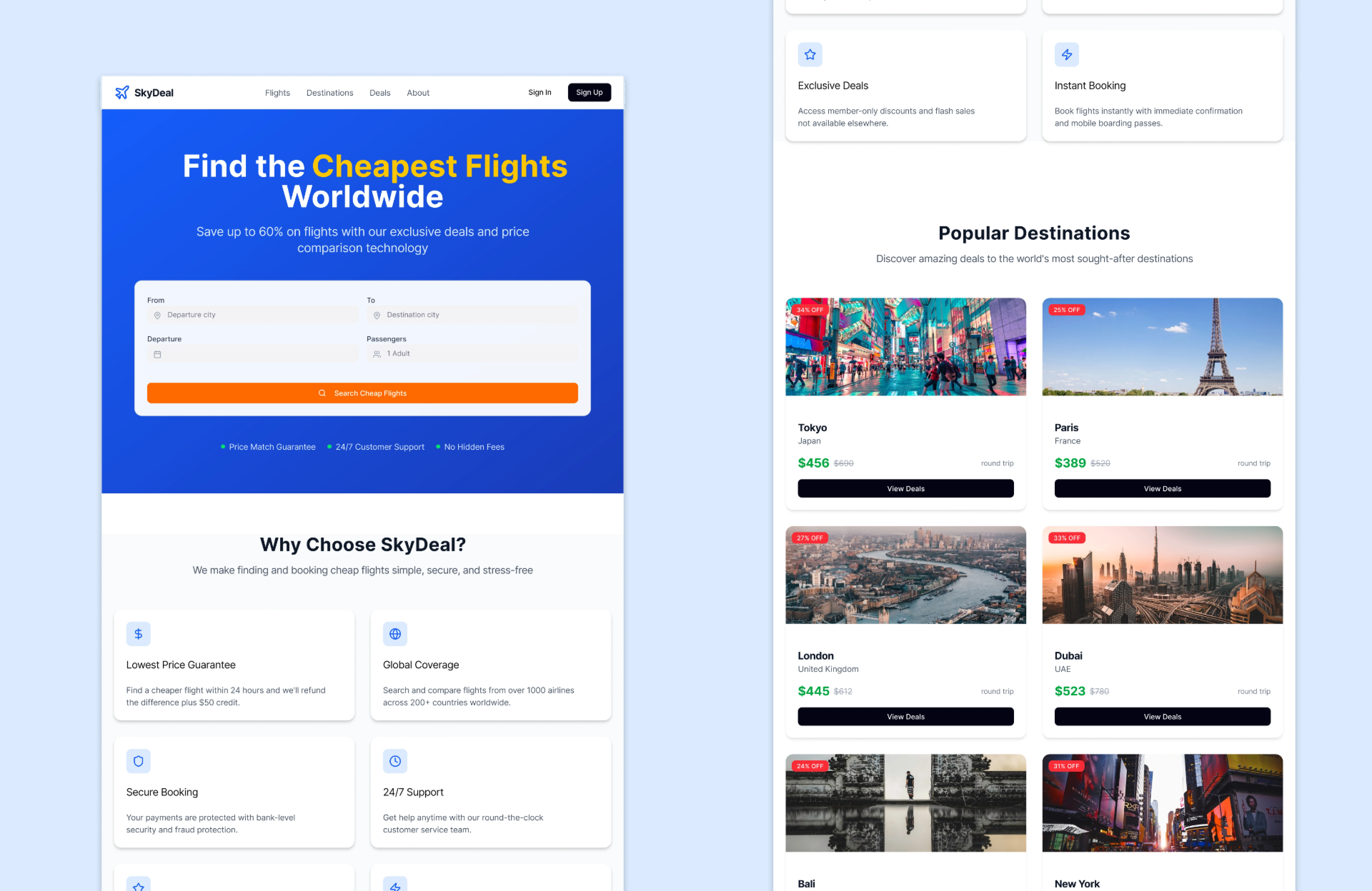 Many travel agency websites feel cluttered and overwhelming. The goal was to design a clean, visually appealing landing page that highlights top destinations and makes booking easy for users.