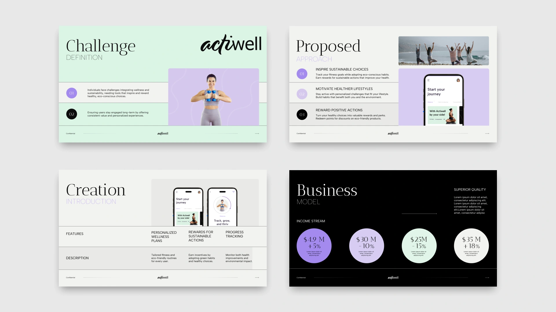 Actiwell: An app blending wellness and sustainability with a minimalist design, focused on building healthy habits.