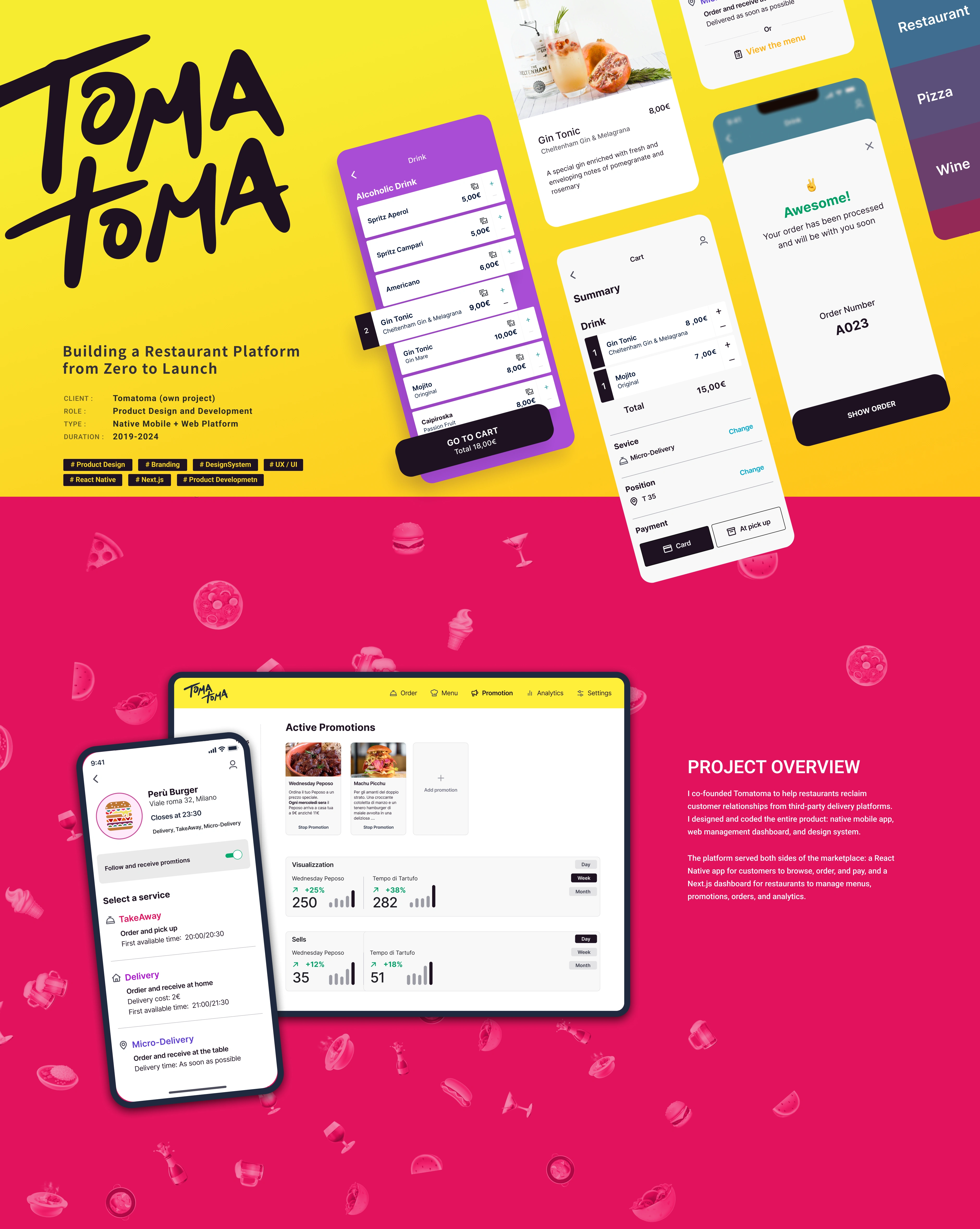 Tomatoma engaged our team to design a platform that empowers restaurants to reclaim customer relationships from 3rd-party delivery services. We created a comprehensive design system and user-friendly interfaces for restaurant owners and customers.