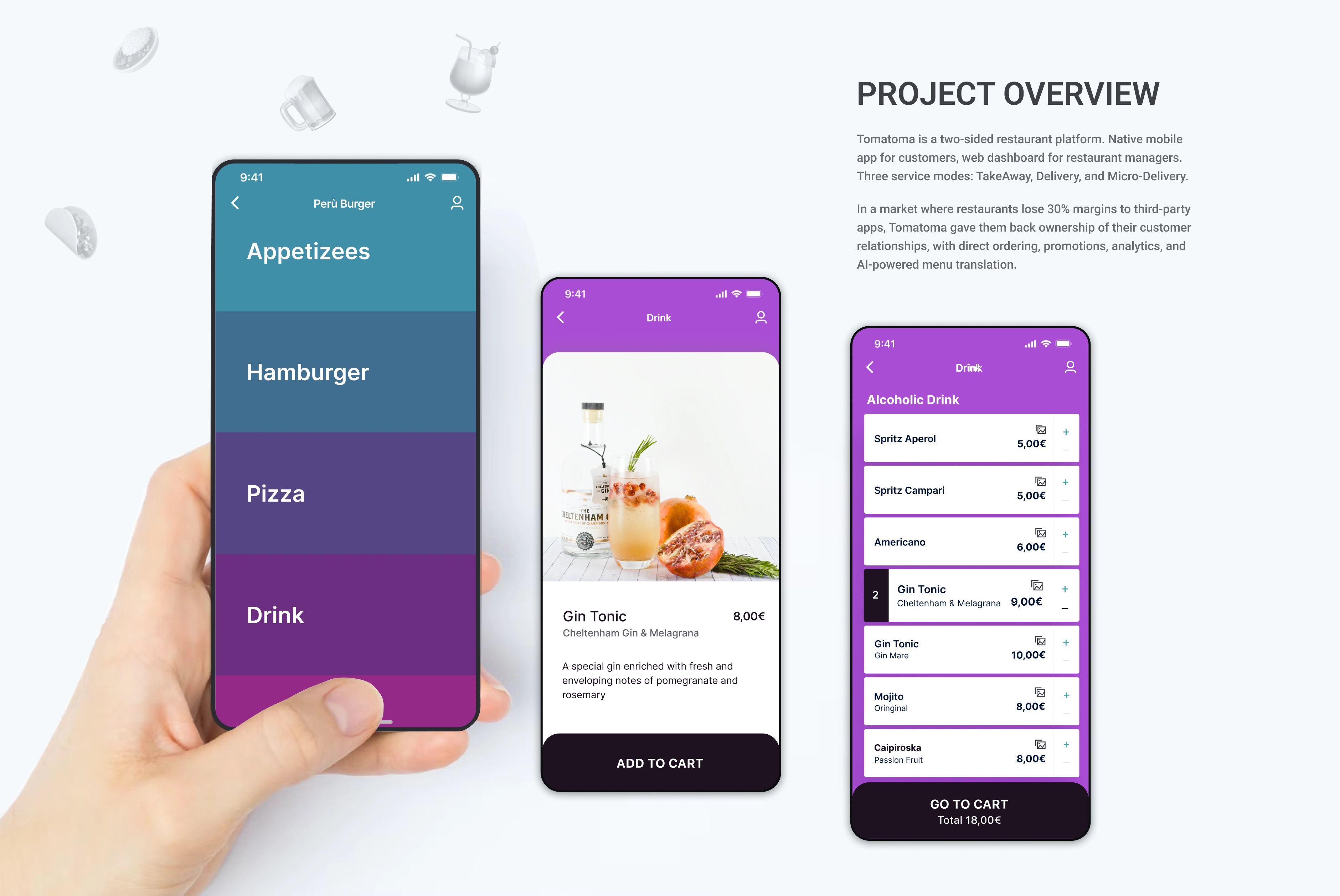 Tomatoma is a suite of app for restaurant owners to streamline delivery, self-ordering, and promotions, with AI-powered menu translation and allergen detection.
