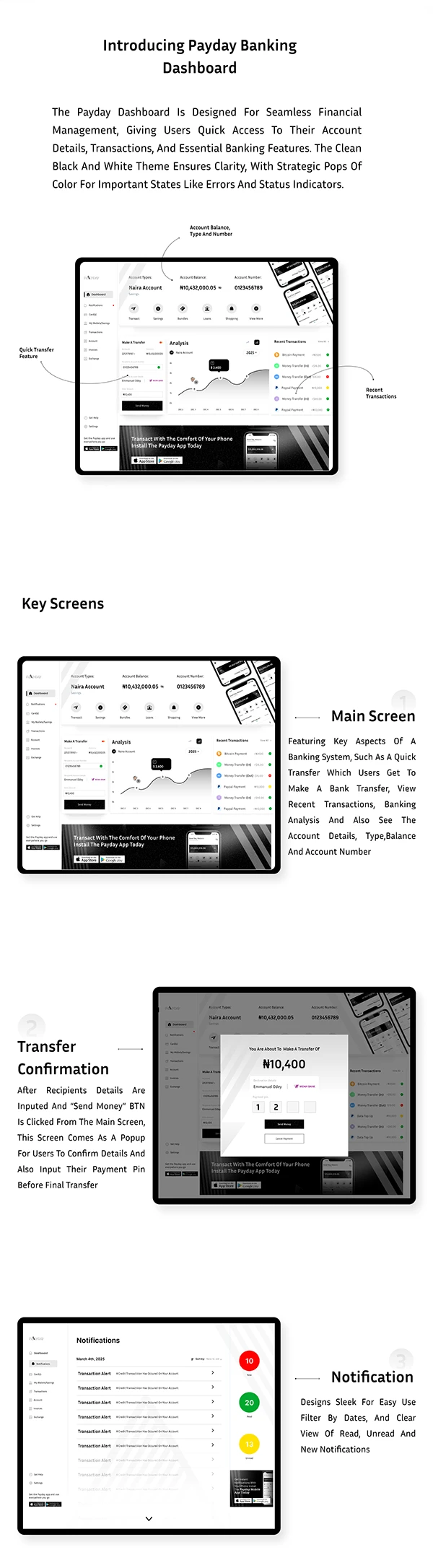 Payday delivers a sleek, user-friendly fintech experience that simplifies money management while reinforcing trust and modern digital identity.