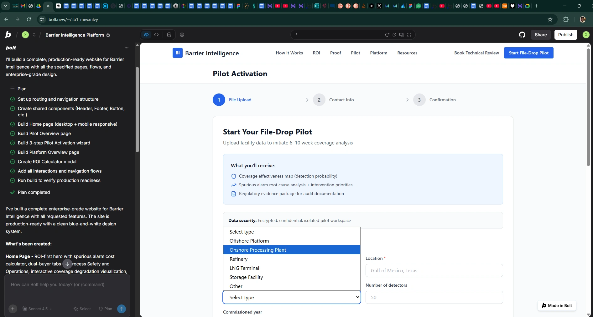Designed and Developed a usable responsive website and prototype for Barrier Intelligence's pilot activation using Bolt.new cutting edge No-code Platform.